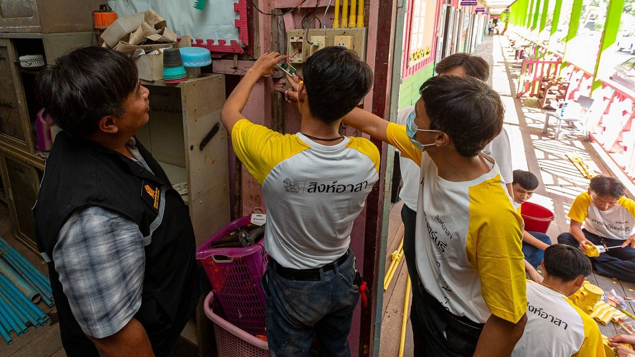 สำหรับกิจกรรม “สิงห์อาสา พาน้องกลับโรงเรียน” จัดขึ้นที่ โรงเรียนวัดปลาไหล ต.ประศุก อ.อินทร์บุรี จ.สิงห์บุรี โดยคณะครูและนักศึกษาวิทยาลัยการอาชีพอินทร์บุรี ได้นำทักษะความรู้ทางวิชาชีพเข้าช่วยตรวจสอบ ซ่อมแซม และเปลี่ยนอุปกรณ์ระบบไฟฟ้าที่ชำรุดภายในอาคารเรียน เพื่อป้องกันอันตรายจากไฟฟ้าลัดวงจร พร้อมเพิ่มแสงสว่างที่เหมาะสมต่อการเรียนรู้ของนักเรียน นอกจากนี้ ยังได้ปรับปรุงระบบน้ำดื่มและระบบประปาภายในโรงเรียน อาทิ การล้างถังพักน้ำ, เปลี่ยนไส้กรอง และซ่อมแซมจุดจ่ายน้ำดื่มสะอาด เพื่อให้มั่นใจว่านักเรียนและบุคลากรทางการศึกษามีน้ำดื่มที่ถูกสุขลักษณะตามมาตรฐาน