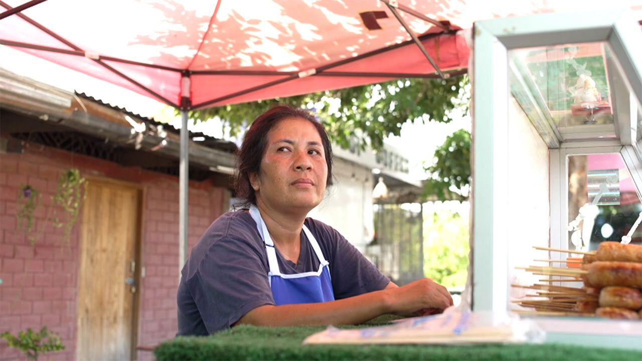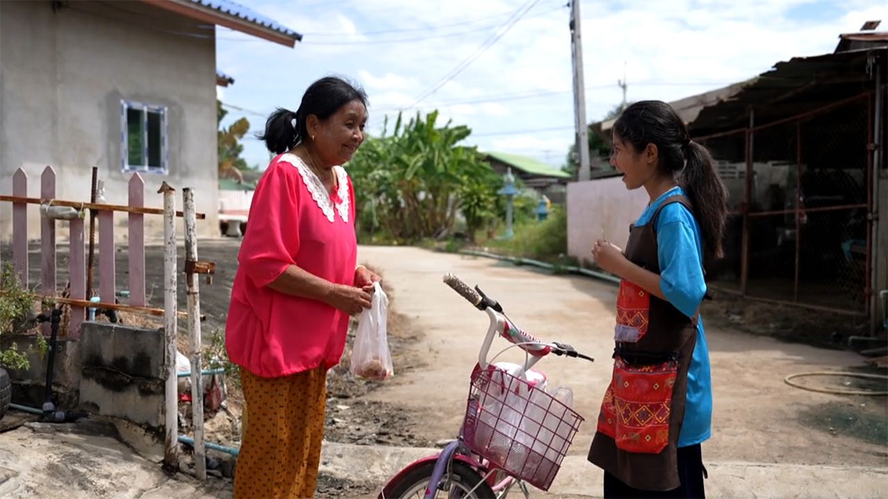 และถึงแม้จะดิ้นรนทำอาชีพขายไส้อั่วเพื่อหาเงินมาเลี้ยงปากท้องแต่ก็ไม่เพียงพอ เพราะร้านไส้อั่วตั้งขายอยู่หน้าบ้าน คนผ่านไปมาไม่เยอะจึงขายไม่ค่อยดี น้องเนมจึงช่วยแม่อีกทางโดยการปั่นจักรยานเอาไส้อั่วไปเร่ขายตามบ้าน รวมถึงถ้าวันไหนอยู่ร้านก็จะช่วยแม่ทำทุกอย่าง ตั้งแต่ย่างไส้อั่ว หั่นผักเคียง และยืนขายหน้าร้าน มีครั้งหนึ่งเคยมีคนมาว่า ทำไมต้องใช้ลูกมาหากิน หน้าที่ทำมาหากินต้องเป็นหน้าที่แม่ ทำให้หัวอกคนเป็นแม่ได้ยินก็รู้สึกเครียดและคิดหนักกับคำพูดที่ได้ยิน น้องเนมจึงออกตัวปกป้องแม่ด้วยการตอบกลับไปว่า แม่ไม่ได้บังคับหนูแต่หนูอยากช่วยแม่จริง ๆ