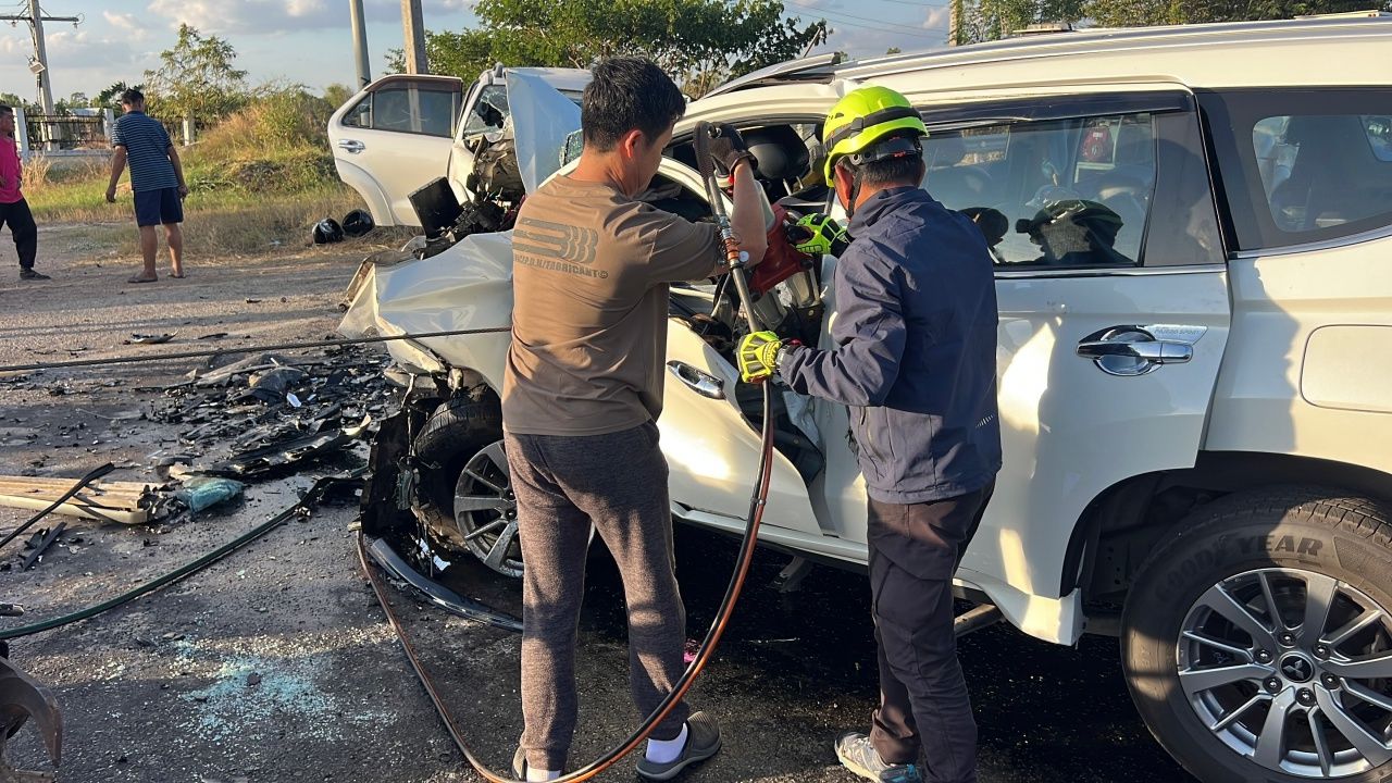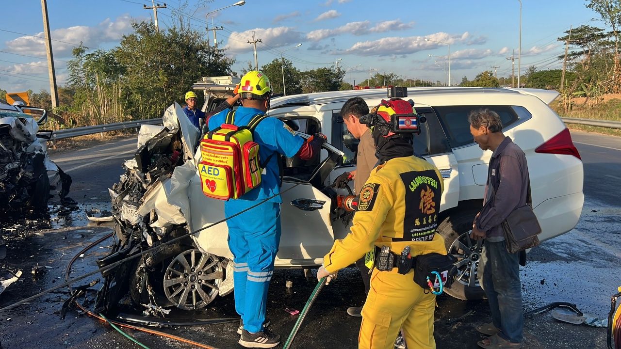 เมื่อเวลา 16.35 น. ของวันที่ 3 มกราคม 2569 ร.ต.อ.ธีพล เกื้อกูล รองสารวัตรสอบสวน สภ.จังหาร ได้รับแจ้งว่ามีอุบัติเหตุรถยนต์อเนกประสงค์ชนประสานงา บนถนนปัทมานนท์ สายร้อยเอ็ด-กาฬสินธุ์ บริเวณทางโค้งบ้านแซงแหลม ตำบลแสนชาติ อำเภอจังหาร จังหวัดร้อยเอ็ด มีผู้บาดเจ็บหลายรายติดภายในรถ จึงรุดออกตรวจสอบพร้อม กู้ชีพ อบต.ดงสิงห์ กู้ภัยเมตตาธรรมจังหาร หน่วยกู้ชีพ รพ.จังหาร กู้ภัยทางหลวงร้อยเอ็ด กู้ภัยอโสกร่องคำ