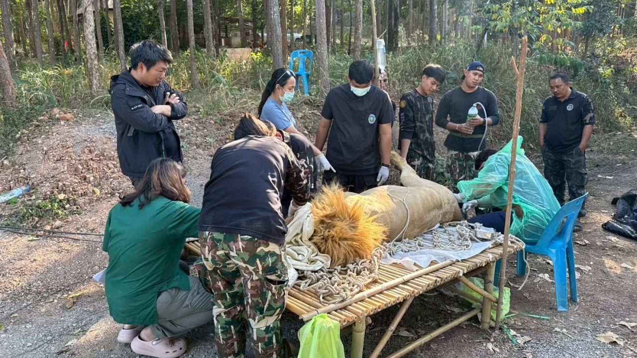 วันที่ 9 มกราคม 2569 มีรายงานว่า นายสุทธิพงษ์ แกมทับทิม หัวหน้ากลุ่มงานเพาะเลี้ยงสัตว์ป่า สำนักอนุรักษ์สัตว์ป่า เปิดเผยความคืบหน้าการดูแลสวัสดิภาพสัตว์ป่าของกลางกรณีสำคัญ โดยในวันที่ 8 ม.ค. 69 ทีมสัตวแพทย์ได้เข้าปฏิบัติการตรวจรักษาและฟื้นฟูสุขภาพสิงโตขาวของกลางจำนวน 2 ตัว ณ สถานีเพาะเลี้ยงสัตว์ป่าเขาสน จังหวัดราชบุรี หลังพบอาการป่วยด้วยระบบขับถ่ายรุนแรง