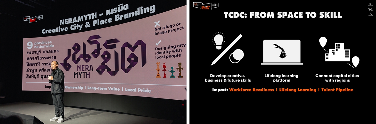 ด้าน นายพิชิต วีรังคบุตร รองผู้อำนวยการสำนักงานส่งเสริมเศรษฐกิจสร้างสรรค์ กล่าวถึงแผนงานการพัฒนาเมืองสร้างสรรค์ในปี 2569 ในช่วง Creative City & People Development โดย CEA มีไฮไลต์โครงการและเป้าหมายสำคัญตลอดปี เช่น วาระครบรอบ 20 ปีของ “ศูนย์สร้างสรรค์งานออกแบบ” (Thailand Creative & Design Center: TCDC) ในปี 2568 TCDC เตรียมมุ่งสู่บทบาทใหม่ โดยปรับจากการเป็นพื้นที่แรงบันดาลใจสู่แพลตฟอร์มเพื่อพัฒนาคนและเพิ่มทักษะสร้างสรรค์ พร้อมตั้งเป้าหมายการเปิด “New TCDC” แห่งใหม่ใน 20 จังหวัดทั่วไทย ตลอดจนการเปิดให้บริการ CEA สาขาภาคใต้ที่ “สงขลา” ซึ่งเป็นสาขาหลักที่จะดูแลอุตสาหกรรมสร้างสรรค์ในกลุ่มจังหวัดภาคใต้ของไทยในปีนี้