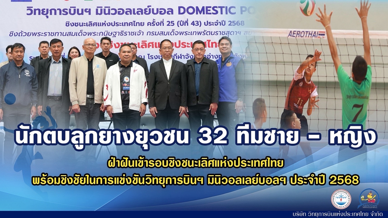 สมาคมกีฬาวอลเลย์บอลแห่งประเทศไทย ร่วมกับ บริษัท วิทยุการบินแห่งประเทศไทย จำกัด (บวท.) จัดการแข่งขัน วิทยุการบินฯ มินิวอลเลย์บอล ชิงชนะเลิศแห่งประเทศไทย ครั้งที่ 25 (ปีที่ 43) ประจำปี 2568 ชิงถ้วยพระราชทานสมเด็จพระกนิษฐาธิราชเจ้า กรมสมเด็จพระเทพรัตนราชสุดาฯ สยามบรมราชกุมารี เปิดเวทีให้ยุวชนชาย – หญิง อายุไม่เกิน 12 ปี เข้าร่วมการแข่งขันฯ รอบชิงชนะเลิศแห่งประเทศไทย ระหว่างวันที่ 11-18 มกราคม 2569 ณ โรงเรียนกีฬาจังหวัดอ่างทอง จังหวัดอ่างทอง โดยทีมที่ชนะเลิศจะได้รับถ้วยพระราชทานฯ ไปครอง 1 ปี พร้อมได้รับทุนการศึกษา 30,000 บาท และเหรียญรางวัล ทีมรองชนะเลิศอันดับ 1 ได้รับทุนการศึกษา 20,000 บาท และเหรียญรางวัล ทีมรองชนะเลิศอันดับ 2 ได้รับทุนการศึกษา 10,000 บาท และเหรียญรางวัล ทีมรองชนะเลิศอันดับ 3 ได้รับทุนการศึกษา 7,000 บาท และเหรียญรางวัล โดยพิธีเปิดการแข่งขันฯ รอบชิงชนะเลิศแห่งประเทศไทย ได้รับเกียรติจาก นายทัศนัย สุธาพจน์ รองผู้ว่าราชการจังหวัดอ่างทอง เป็นประธานในพิธีฯ และนายปรีชา ศรีเขียวพงษ์ ประธานคณะกรรมการสถานศึกษาโรงเรียนกีฬาจังหวัดอ่างทอง กล่าวรายงานวัตถุประสงค์ของการจัดการแข่งขัน