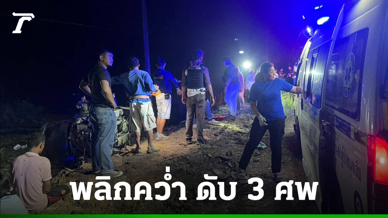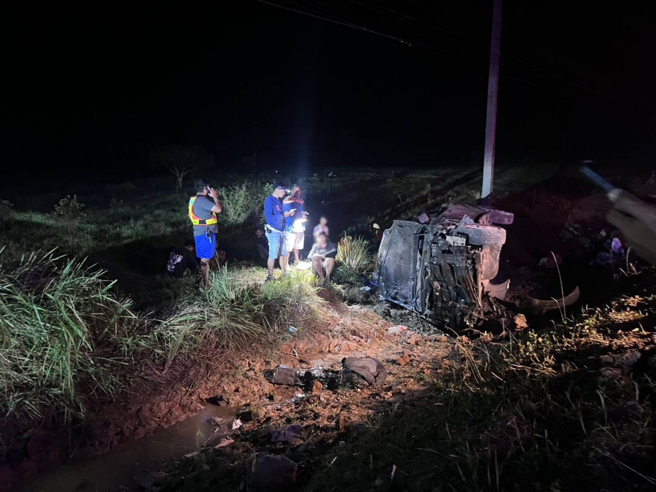 ตำรวจไล่ล่ากระบะขนแรงงานเมียนมา เสียหลักพลิกคว่ำตกข้างทางที่ จ.พัทลุง ส่งผลให้มีผู้เสียชีวิต 3 ศพ เจ็บอีก 12 ราย