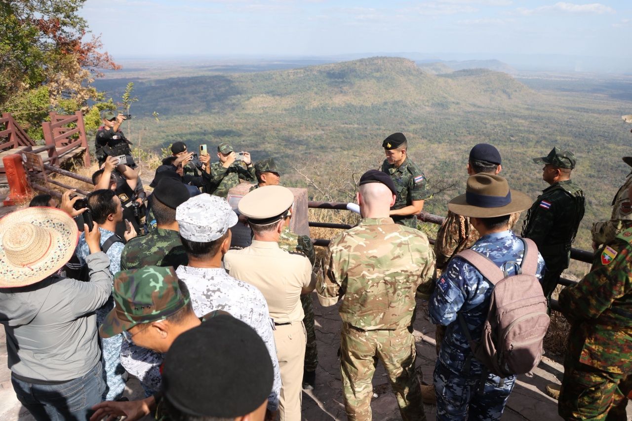 ความเคลื่อนไหวสถานการณ์ชายแดนไทย-กัมพูชา เมื่อวันที่ 22 มกราคม 2569 คณะผู้ช่วยทูตทหารต่างประเทศกว่า 20 นาย จากมากกว่า 10 ประเทศ ลงพื้นที่จุดปะทะบริเวณผามออีแดง ภายในอุทยานแห่งชาติเขาพระวิหาร อ.กันทรลักษ์ จ.ศรีสะเกษ เพื่อรับฟังข้อมูลเหตุปะทะระหว่างทหารไทยและกัมพูชา ซึ่งเกิดขึ้นในช่วงวันที่ 8–27 ธ.ค. 2568
