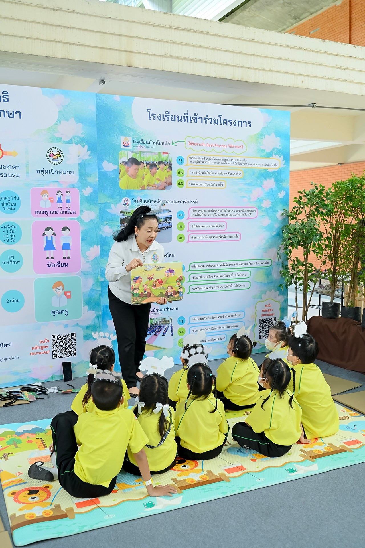 บรรยากาศงานสองวันแรกคึกคักเป็นอย่างยิ่ง เพราะมี น้อง ๆ หนูๆ และคุณครู จากโรงเรียนต่างๆ ในกทม. และนครปฐม รวม 32 โรงเรียน เกือบ 1,000 คน มาร่วมแลกเปลี่ยนเรียนรู้และทำกิจกรรมส่งเสริมพัฒนาการอย่างคับคั่ง