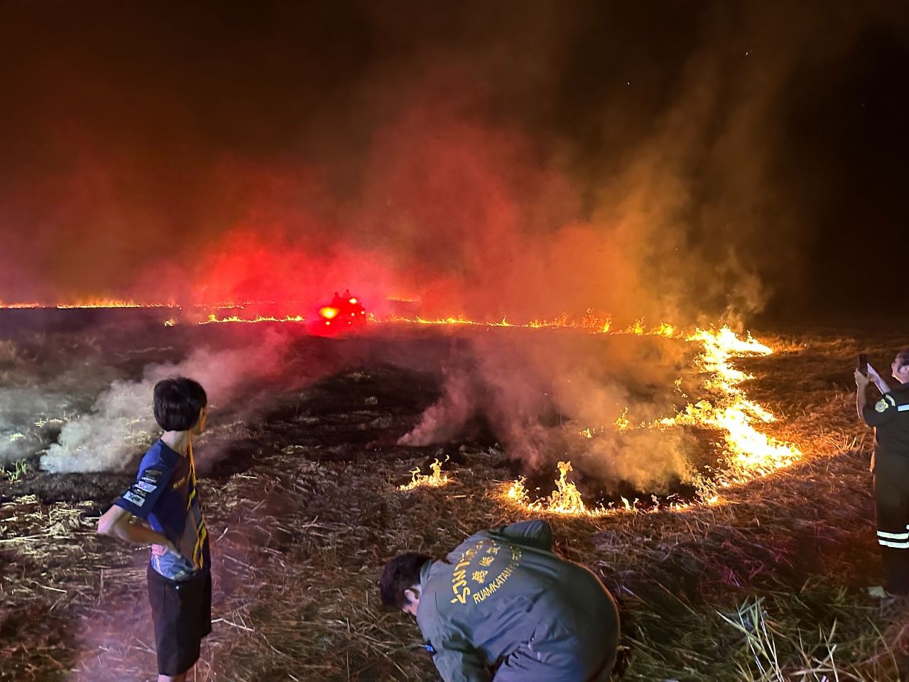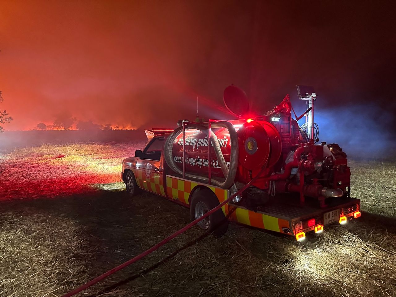 วันที่ 28 ม.ค. 69 มีรายงานว่า เมื่อช่วงเย็นวันที่ 27 ม.ค.ที่ผ่านมา ปภ.จังหวัดนครนายก ระดมขอความร่วมมือ รถน้ำจากทุกอบต.ในจังหวัดนครนายก และกู้ภัยร่วมกตัญญูจังหวัดนครนายกและกู้ภัยในพื้นที่ นำรถน้ำและกำลังพลมาช่วยกันสกัดไฟลามทุ่งที่กำลังลุกลามในพื้นที่ตำบลท่าเรือ อำเภอปากพลี จังหวัดนครนายก ที่กำลังขยายตัวและมีบางส่วนเริ่มใกล้เข้าสู่บ้านเรือนประชาชน