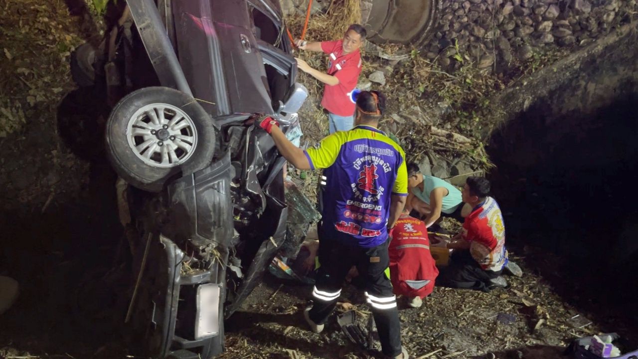 ภายในมีผู้โดยสารรวมคนขับ จำนวน 8 คน กู้ชีพช่วยเหลือออกมาได้ จำนวน 4 คน หนึ่งใน 4 คนมีอาการสาหัส ไม่รู้สึกตัว