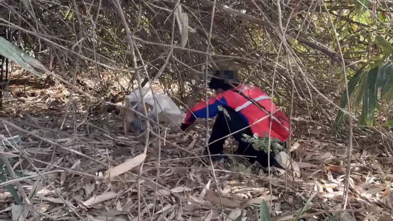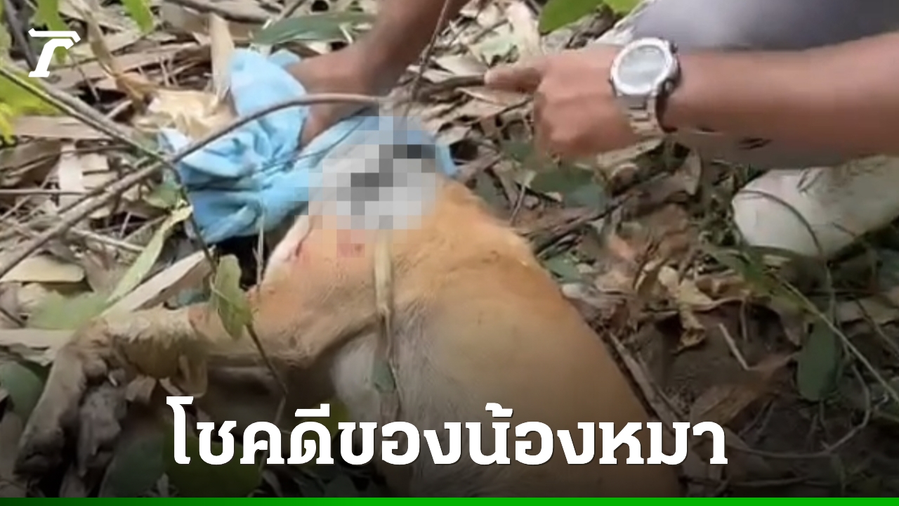คนใจร้ายยิงลูกดอกใส่สุนัข ยัดใส่ถุงปุ๋ยทิ้งป่าข้างทางหวังให้ตาย โชคดีหนุ่มไปรษณีย์มาเจอช่วยไว้ทัน รีบพาส่งสัตวแพทย์