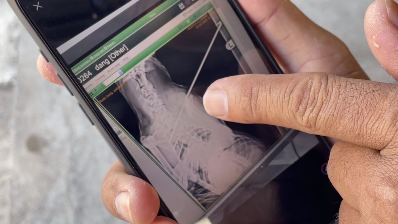 จากนั้นจึงรีบนำสุนัขตัวดังกล่าวขึ้นรถไปหาสัตวแพทย์ ให้การช่วยเหลือเป็นการด่วน ซึ่งตอนนี้สุนัขอยู่ระหว่างการรอผ่าตัด อาการยังทรงตัว