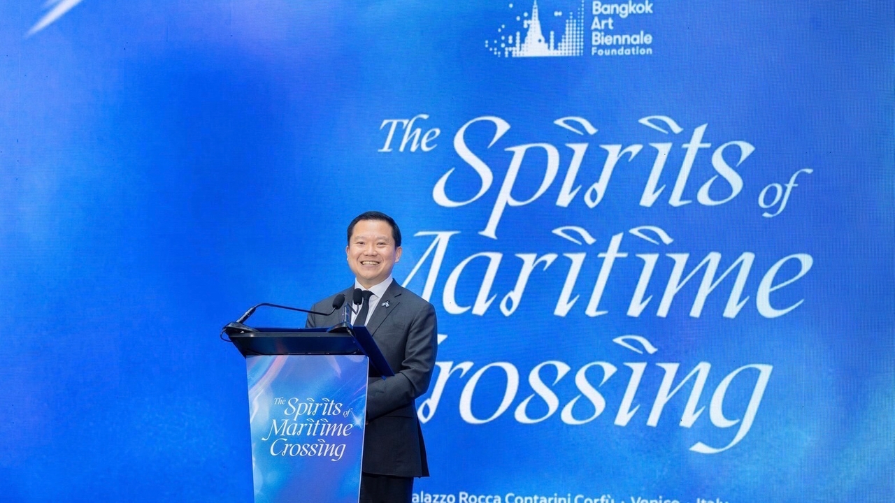 คุณฐาปน สิริวัฒนภักดี ประธานเจ้าหน้าที่บริหาร บริษัท ไทยเบฟเวอเรจ จำกัด (มหาชน) และประธานกรรมการ และผู้ก่อตั้งมูลนิธิ บางกอก อาร์ต เบียนนาเล่ กล่าวว่า “ผมรู้สึกยินดี และเป็นเกียรติอย่างยิ่งที่ทุกท่านกรุณาให้เกียรติมาร่วมงานแถลงข่าว “The Spirits of Maritime Crossing : วิญญาณข้ามมหาสมุทร 2026" ที่จะจัดขึ้นระหว่างวันที่ 9 พฤษภาคม - 2 สิงหาคม 2569 ณ นครเวนิส สาธารณรัฐอิตาลี ในช่วงเวลาเดียวกับการจัดมหกรรมศิลปะนานาชาติ เวนิส เบียนนาเล่ ครั้งที่ 61 (The 61th International Art Exhibition, Venice Biennale)