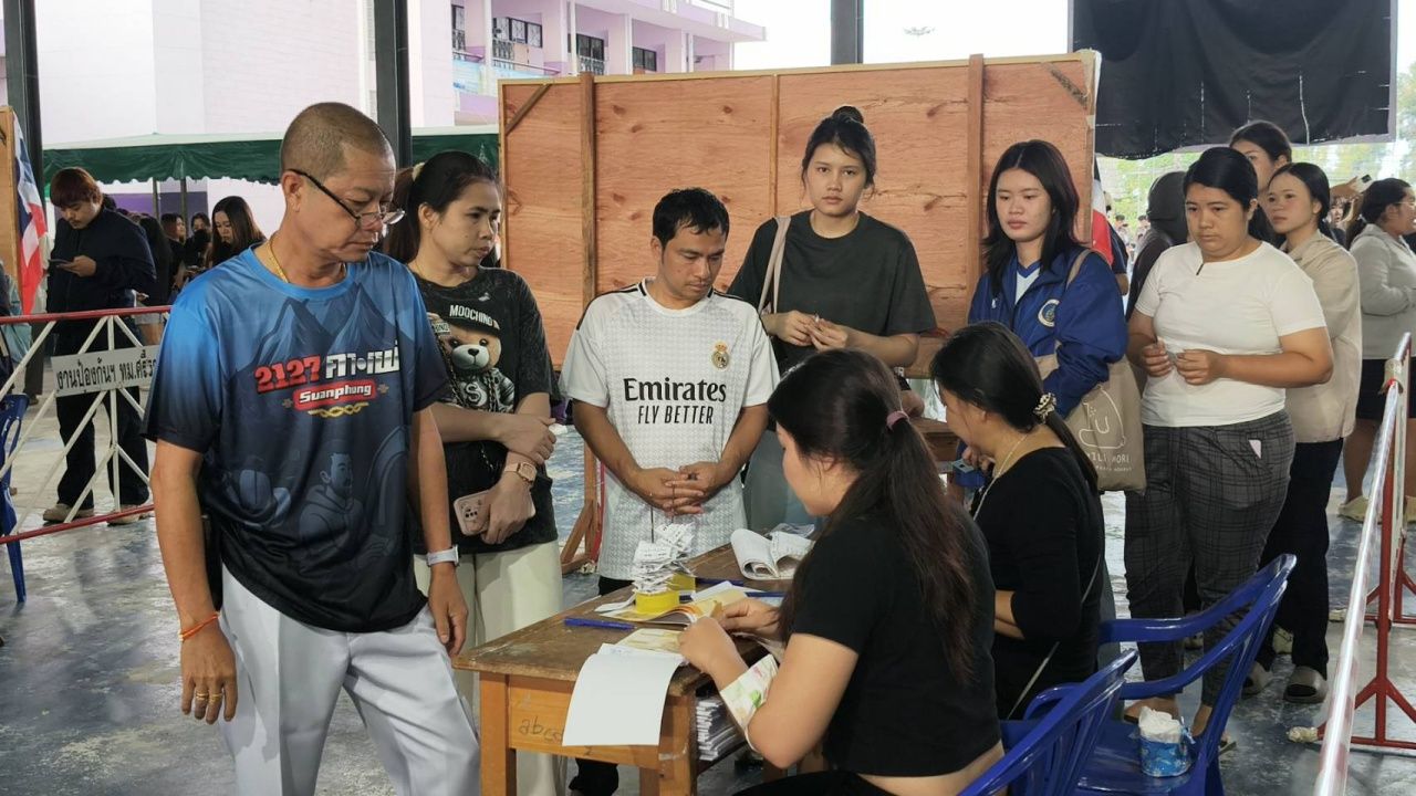 ชลบุรี เปิดหีบแล้วเลือกตั้ง 2569 ผู้มีสิทธิทยอยเข้าคูหาคึกคัก รับบัตร 3 ใบ เลือก สส.และออกเสียงประชามติ พบว่าประชาชนตื่นตัวไม่แพ้จังหวัดอื่น