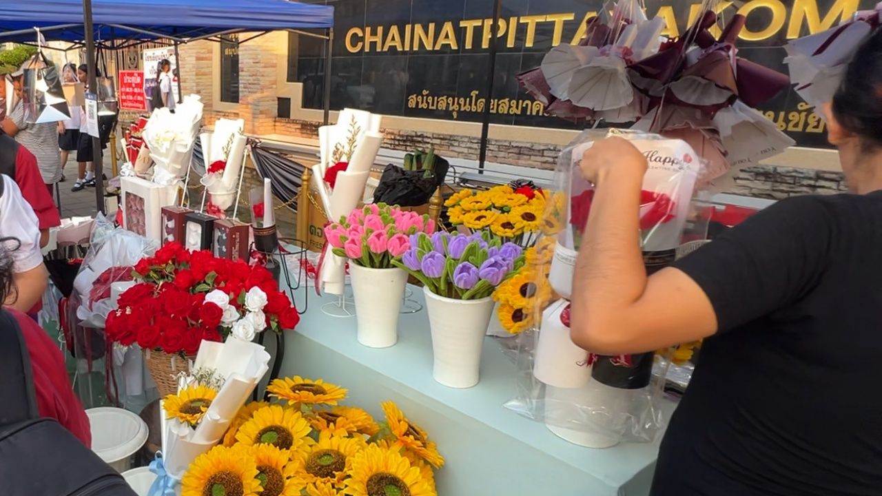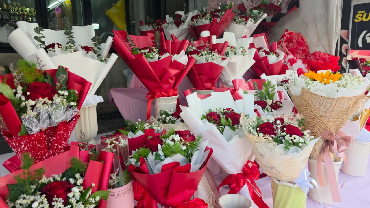 โดยในแต่ละร้านก็จะมีช่อดอกกุหลาบหลากหลายชนิด ไม่ว่าจะเป็น ดอกไม้สด ดอกไม้แห้ง รวมถึงช่อธนบัตร เป็นต้น คาดว่าปีนี้เงินสะพัดหลักล้านบาท เพราะปีนี้ออเดอร์สั่งจอง สั่งซื้อ แต่ก็ไม่ได้ขายดีเหมือนปีก่อน เพราะปีนี้วันวาเลนไทน์ตรงกับวันเสาร์เป็นวันหยุดเรียน เด็กๆ นักเรียนที่เป็นตัวกระตุ้นยอดขาย ไม่มาซื้อ ยอดขายก็ไม่ดีเท่าปีก่อนๆ