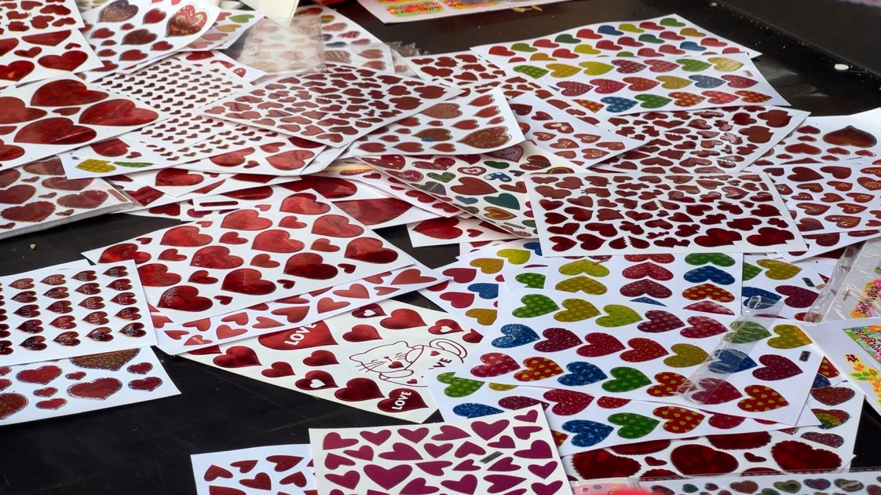 ด้าน นายจากรนิตย์ เปียนาค พ่อค้าสินค้ากิ๊ฟช็อป เผยว่า สติ๊กเกอร์รูปหัวใจ มาแรง เด็กๆ มาหาซื้อกันไปติดคนที่ชอบกันเยอะ เพราะราคาถูก สบายกระเป๋า ทางร้านจัดโปรซื้อครบ 50 บาท แถมอีก 2 อัน ทำเอาปีนี้ยอดขายถล่มทลาย มีเท่าไรก็ขายหมดเท่านั้น.