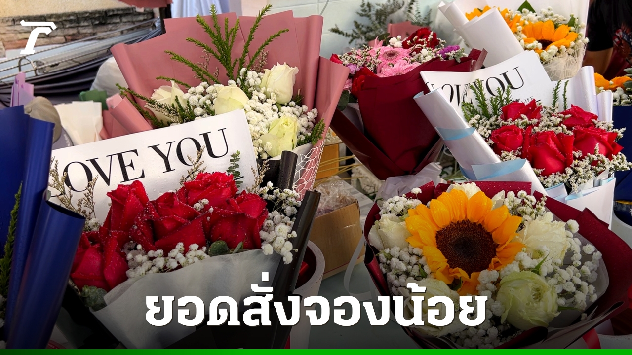 ร้านดอกไม้เผยวาเลนไทน์ปีนี้ยอดสั่งจองน้อย เหตุตรงกับวันหยุด ขณะที่ราคาดอกไม้ไม่แพงเท่าปีก่อน ส่วนสติ๊กเกอร์หัวใจสุดฮอตขายเกลี้ยง