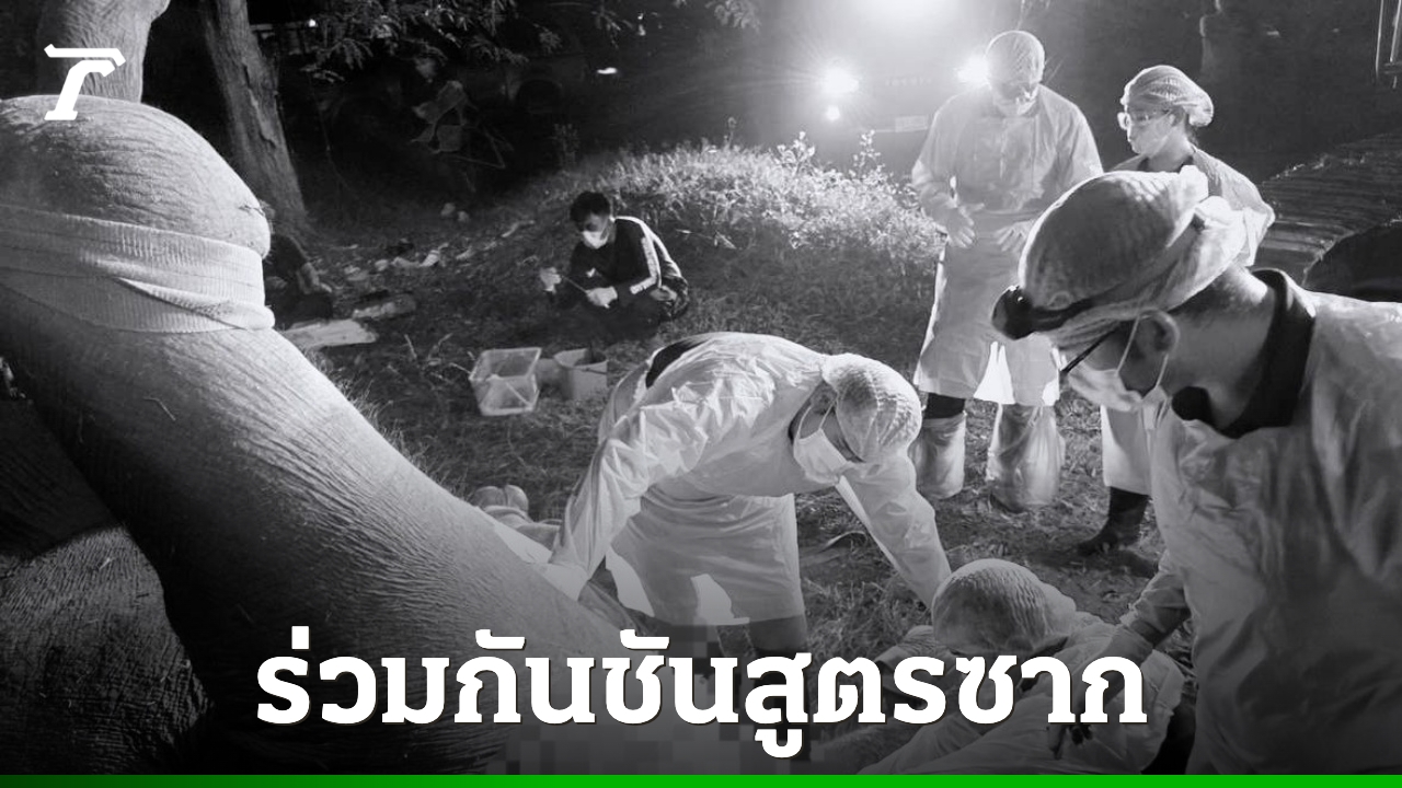 ทีมสัตวแพทย์ผ่าชันสูตร "แม่ช้างป่าเขาฉกรรจ์" ล้มลงอย่างสงบ ก่อนเก็บตัวอย่างอวัยวะภายในส่งตรวจหาสาเหตุอย่างละเอียด