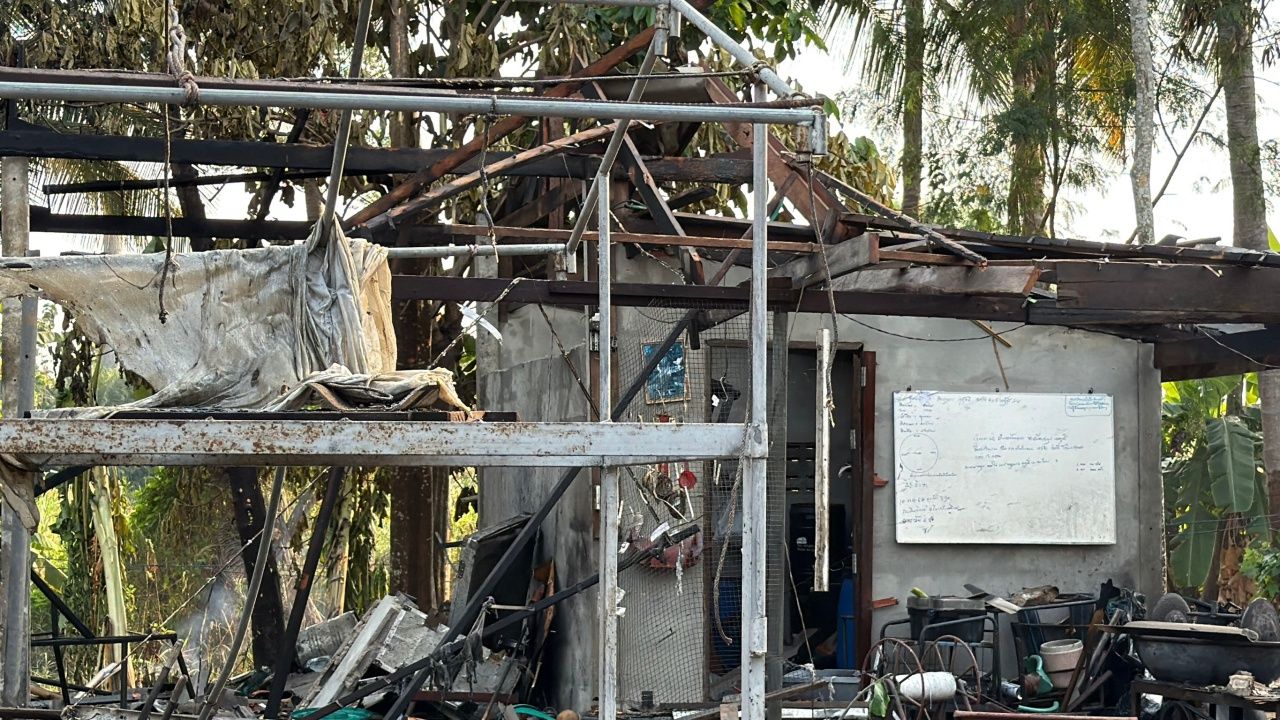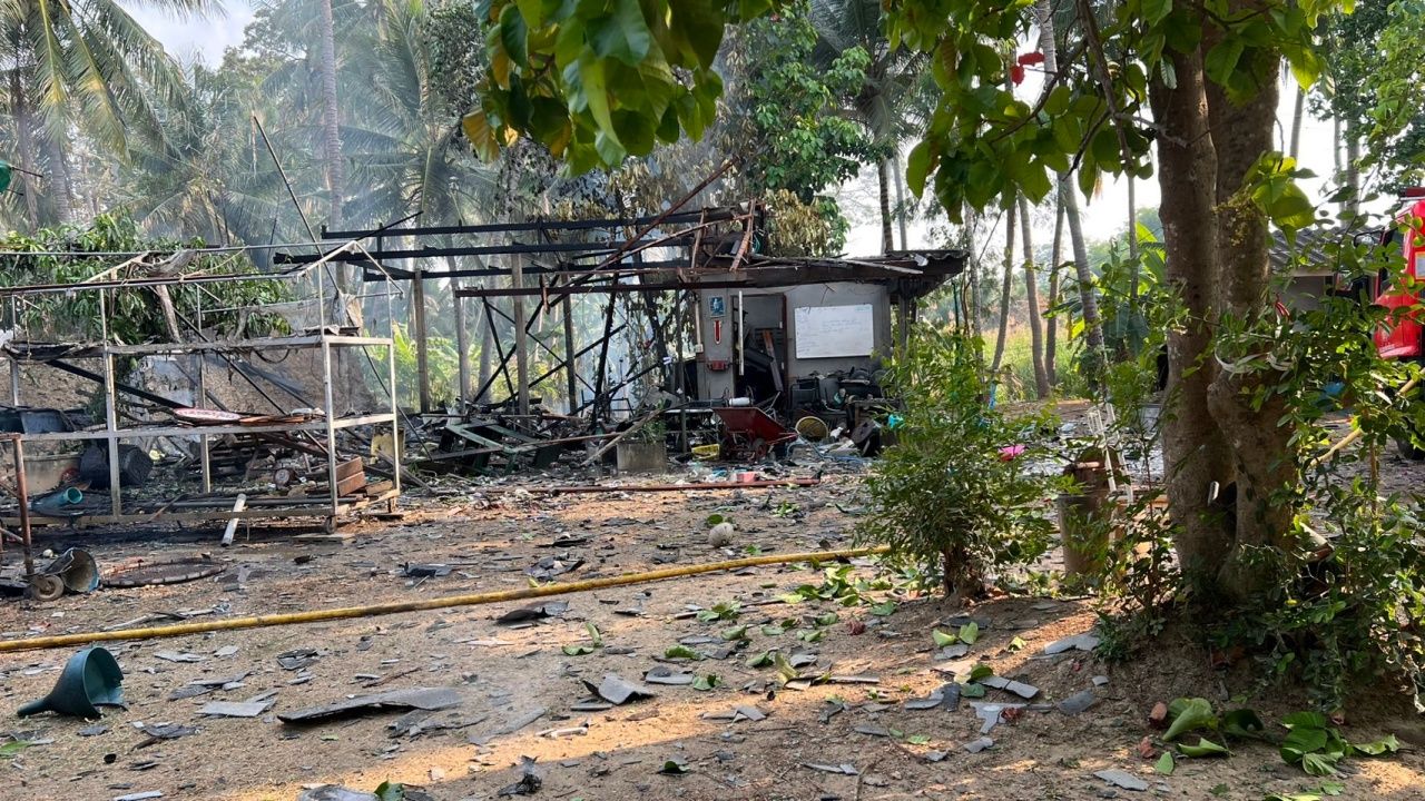 เสียงระเบิดดังสนั่น โรงผลิตพลุงานศพระเบิด บ้านกระจายทั้งหลัง เจ้าของถูกไฟลวกทั้งตัวเจ็บสาหัส คาดสาเหตุเกิดจากอากาศร้อน