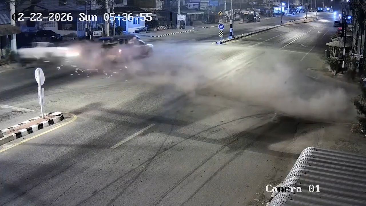 อุบัติเหตุสลด "กระบะฝ่าไฟแดง" วัดจันทนาราม จ.ชัยนาท เฉี่ยวชนท้ายรถส่งคนงาน ก่อนเสียหลักพุ่งชนเสาไฟฟ้า หมุนเคว้งไปชนรถกระบะที่จอดอยู่ จนสภาพรถขาดสองท่อน เสียชีวิต 5 บาดเจ็บ 4 ราย