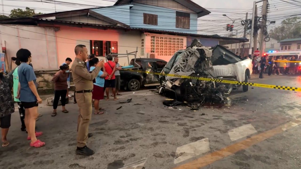 เมื่อเวลา 05.30 น. วันที่ 22 ก.พ. 2569 ว่าที่ พ.ต.ต.โสธร สุขแก้ว สว.(สอบสวน) สภ.สรรคบุรี อ.สรรคบุรี จ.ชัยนาท รับแจ้งอุบัติเหตุ ที่บริเวณสี่แยกไฟแดงวัดจันทนาราม ม.1 ต.ห้วยกรด อ.สรรคบุรี จ.ชัยนาท รถกระบะฝ่าไฟแดง ชนท้ายรถกระบะรับ-ส่งคนงาน แล้วไปชนกับเสาไฟฟ้า จากนั้นหมุนเคว้งไปชนกับรถกระบะที่จอดอยู่ เสียชีวิตและบาดเจ็บหลายราย จึงรุดตรวจสอบพร้อมเจ้าหน้าที่อาสาสมัครมูลนิธิร่วมกตัญญูจังหวัดชัยนาทและแพทย์เวร รพ.สรรคบุรี
