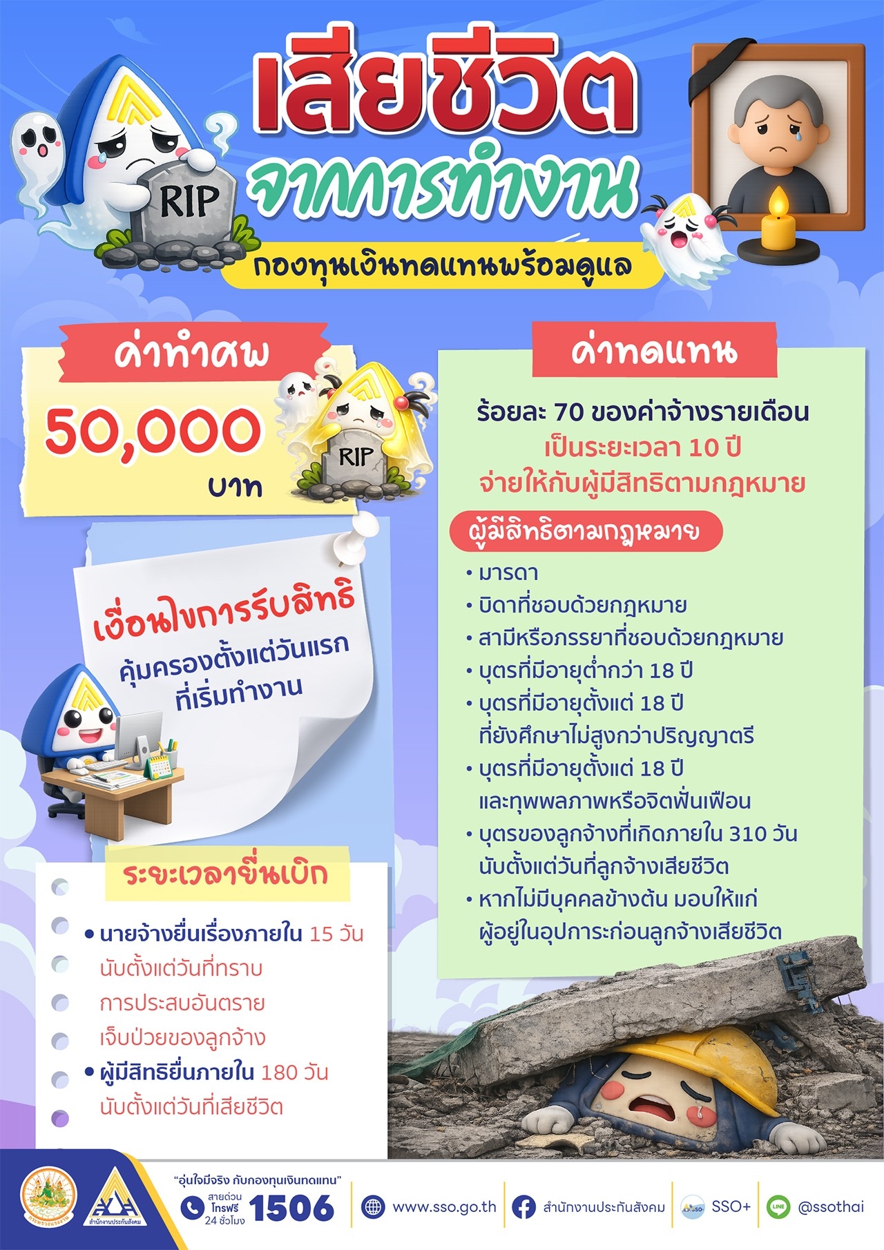 เมื่อเกิดเหตุไม่คาดคิด เสียชีวิตจากการทำงาน กองทุนเงินทดแทนพร้อมดูแล