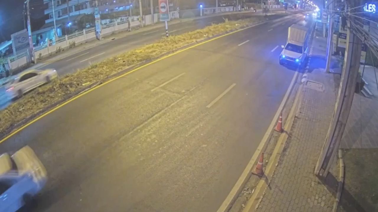 หลังจากนั้นมีภาพวงจรปิดอีกมุม ช่วงเวลา 21.42.07 น. จับภาพได้ในขณะที่ผู้เสียชีวิตคือ 2 สามีภรรยาพากันขับขี่รถจักรยานยนต์ออกมาจากซอย ประกอบกับภาพจากกล้องมุมแรก จะเห็นว่าทันทีที่คนขับรถกระบะเห็นผู้เสียหายขี่ จยย. ออกมาจากซอย ก็มีการเปิดไฟหน้าและเร่งเครื่องขับตามไล่หลังออกไปทันที ก่อนพุ่งชนท้ายจนเกิดเหตุสลด