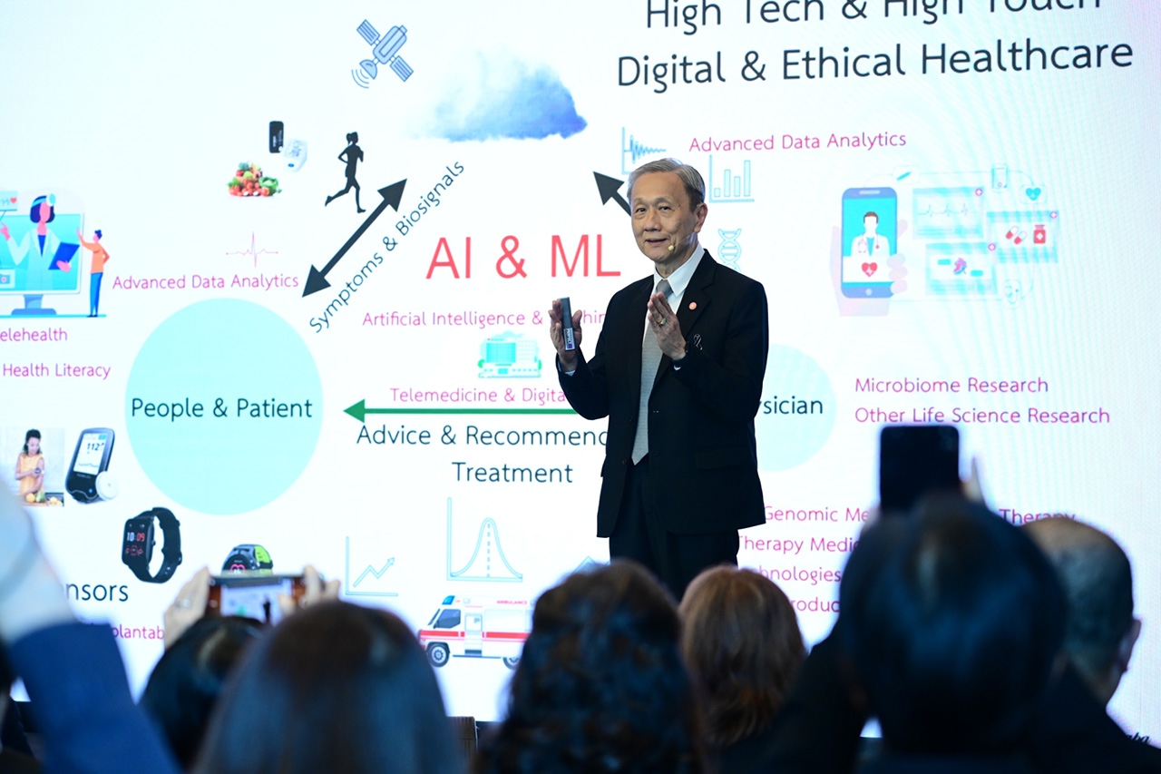 ในงาน ยังได้รับเกียรติจาก ศ.ดร.นพ.ประสิทธิ์ วัฒนาภา ประธานกรรมการ สำนักงานเทคโนโลยีและนวัตกรรมด้านชีววิทยาศาสตร์ (องค์การมหาชน) ร่วมกล่าวปาฐกถาในหัวข้อ “นวัตกรรมการแพทย์ดิจิทัล: พลังขับเคลื่อนสู่สังคมสุขภาพดีของไทย ก้าวไกลสู่เวทีโลก” โดยชี้ให้เห็นว่า การยกระดับระบบนิเวศนวัตกรรมสุขภาพของไทยให้เติบโตอย่างแข็งแกร่งและยั่งยืน จำเป็นต้องอาศัยความร่วมมือจากภาครัฐ ภาคเอกชน และสตาร์ทอัปด้านสุขภาพ เพื่อผลักดันนวัตกรรมและเทคโนโลยีทางการแพทย์ เช่น การวินิจฉัยโรคด้วย AI และเครื่องมือดิจิทัลความแม่นยำสูง แนวทางดังกล่าวเป็นรากฐานสำคัญของการดูแลสุขภาพเชิงรุก ช่วยยกระดับคุณภาพการรักษา ลดภาระระบบโรงพยาบาล และขยายการเข้าถึงบริการสุขภาพของประชาชนทั่วประเทศ อันจะนำไปสู่การยกระดับคุณภาพชีวิตของคนไทย พร้อมต่อยอดเทคโนโลยีการแพทย์ของไทยสู่การยอมรับในระดับสากล
