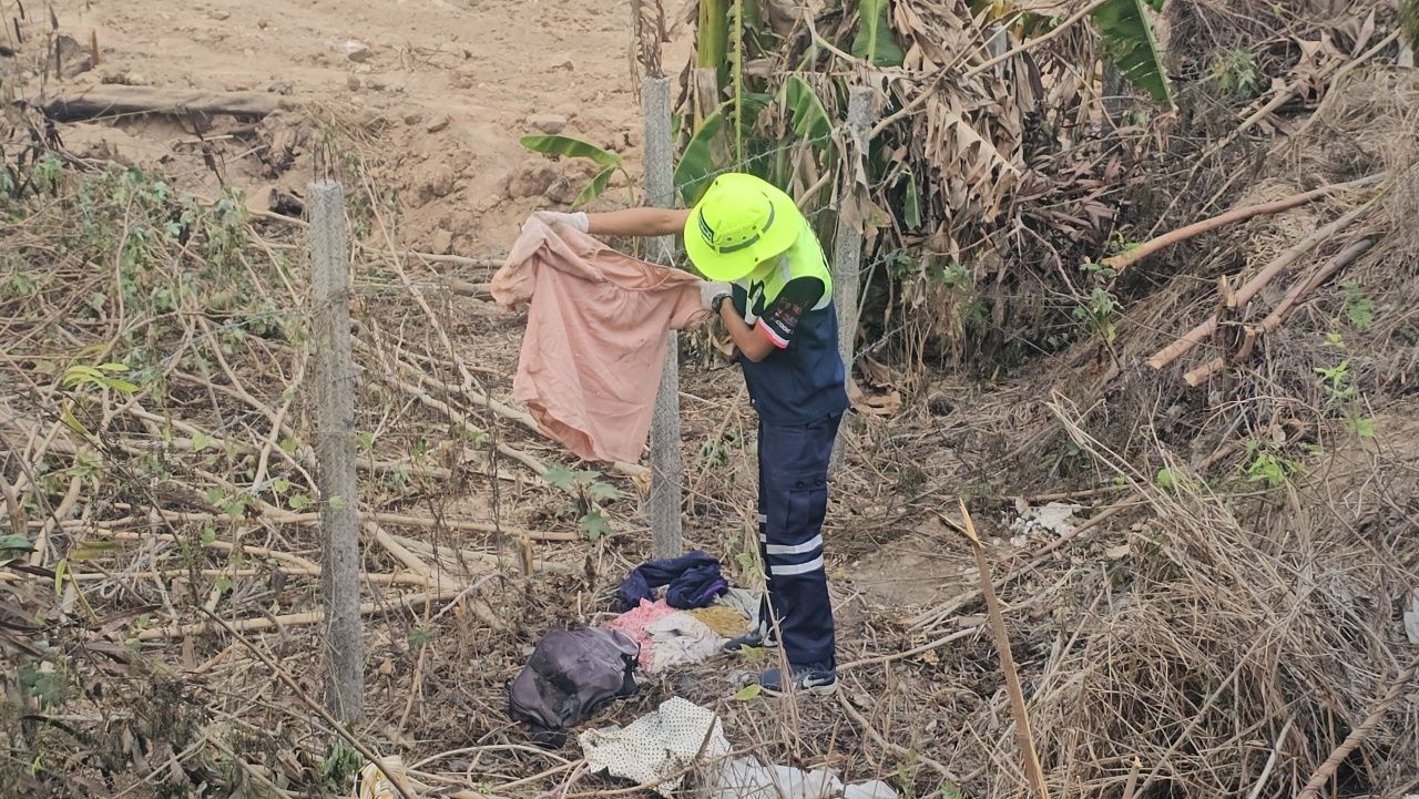 เมื่อไปถึง พบว่ามีชิ้นส่วนกระดูกของมนุษย์ประกอบด้วย หัวกะโหลก 1 ชิ้น, ท่อนแขนด้านบน 2 ชิ้น, สะโพก 1 ชิ้น และชิ้นเล็กๆ อีกจำนวนหนึ่ง แต่ละชิ้นถูกพบห่างกัน ประมาณ 40-50 เมตร โดยชิ้นส่วนกระดูกมนุษย์ที่พบ คาดว่า ผู้ตายน่าจะเสียชีวิตมาอย่างน้อย 2-3 เดือน ต่อมาตำรวจและกู้ภัยพยายามเดินตามหาชิ้นส่วนอื่นๆ ในรัศมีกว่า 100-200 เมตร แต่ก็ยังไม่พบ นอกจากนี้ยังพบกระเป๋าเสื้อผ้า ห่างจากหัวกะโหลก ประมาณ 10 เมตร ภายในมีเสื้อผ้าผู้หญิง 6-7 ตัว ซึ่งทางตำรวจยังไม่สามารถฟันธงได้ว่า จะมีส่วนเกี่ยวข้องกับโครงกระดูกมนุษย์ที่พบดังกล่าวหรือไม่