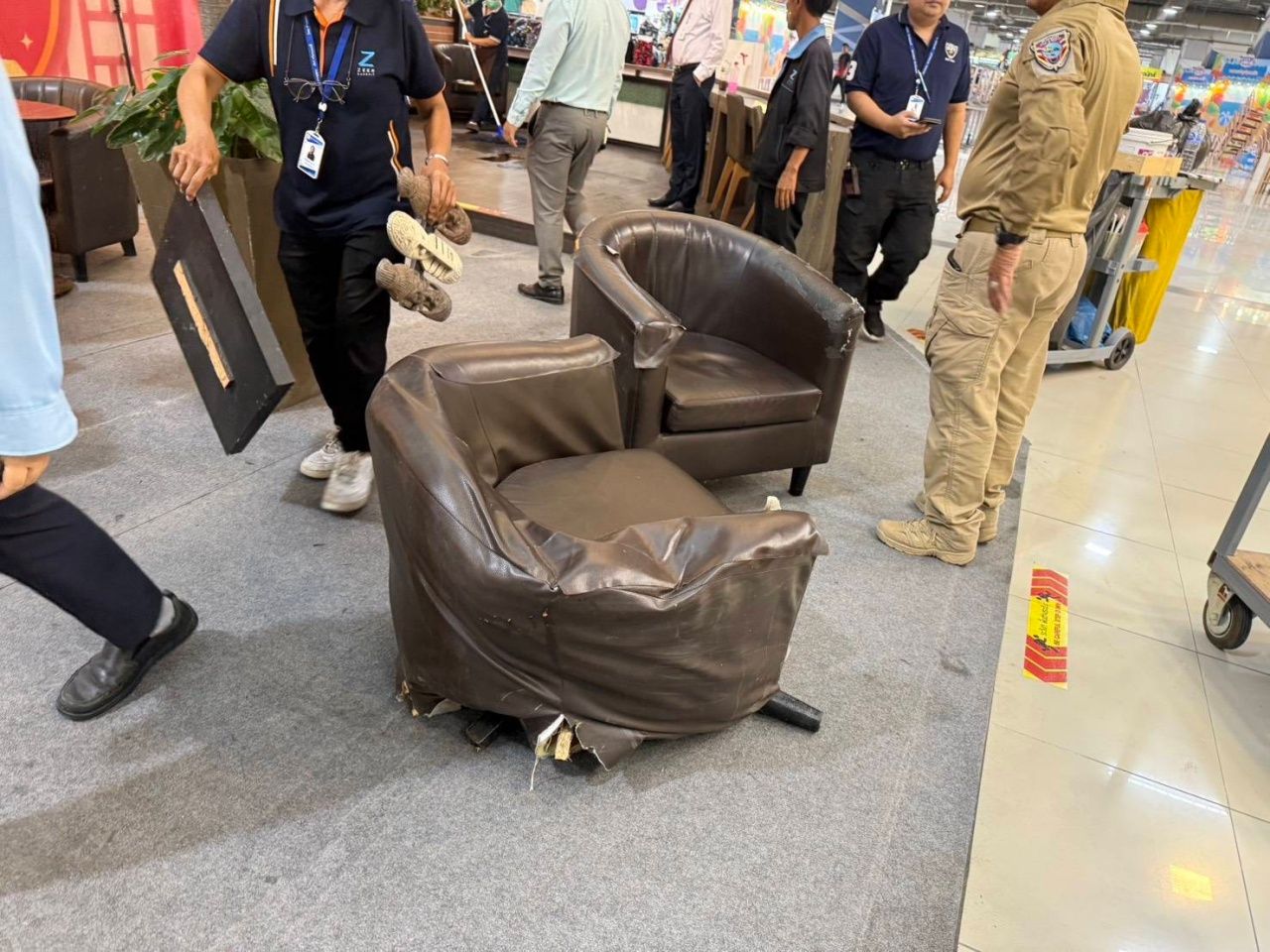 ในที่เกิดเหตุบริเวณชั้นใต้ดินร้านกาแฟที่ปิดกิจการแล้วข้างบันไดเลื่อนภายในห้าง เจ้าหน้าที่พบร่างผู้หญิงนอนตะแคงขวาอยู่กับพื้นสวมเสื้อเชิ้ตลายดอกแขนยาวสีดำขาว นุ่งกางเกงยีนส์ขายาว ทราบชื่อต่อมา นางสาวอัชลี อายุ 45 ปี ได้รับบาดเจ็บสาหัส นอน โดยมีบาดแผลที่ศีรษะและขาขวาผิดรูป หมดสติหายใจรวยริน จากการกระโดดลงจากชั้น 5 ร่างลอยละลิ่วกระแทกเก้าอี้โซฟาร้านกาแฟก่อนที่ร่างจะไปกระแทกพื้นไม้จนไม้แตกเป็นรูโบ๋ เจ้าหน้าที่กู้ภัยมูลนิธิป่อเต็กตึ๊ง ได้ทำการปฐมพยาบาลเบื้องต้น ทำ CPR ก่อนนำส่งโรงพยาบาลแพทย์รังสิต