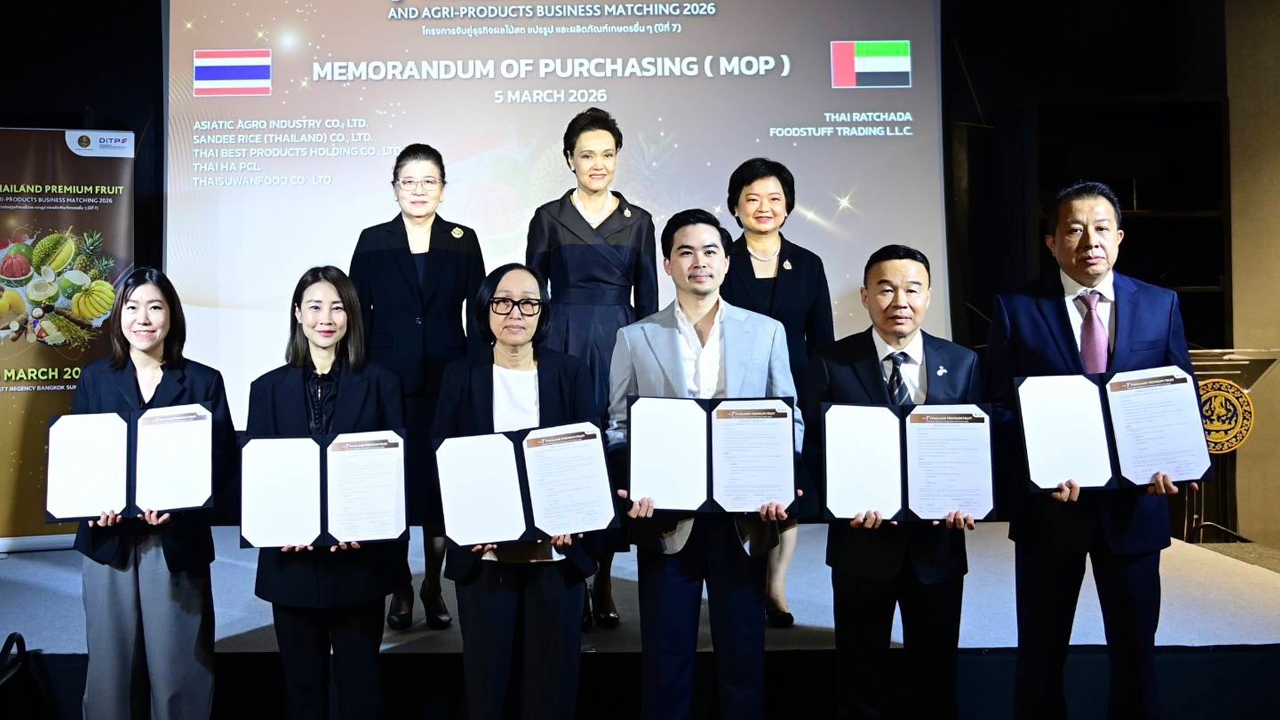 นอกจากนี้ ภายในงาน ยังมีพิธีลงนาม MOP ระหว่างผู้ส่งออกไทยและผู้นำเข้าจากสหรัฐอาหรับเอมิเรตส์ (UAE) จำนวน 10 คู่ รวมปริมาณกว่า 3,000 ตัน ซึ่งจะช่วยขยายฐานการส่งออกผลไม้ไทยในระยะยาว แม้อยู่ท่ามกลางสถานการณ์ความไม่สงบในภูมิภาค โดยรัฐมนตรีฯ ได้ส่งกำลังใจให้คู่ค้าทางธุรกิจ พร้อมย้ำความเชื่อมั่นในคุณภาพผลไม้ไทย