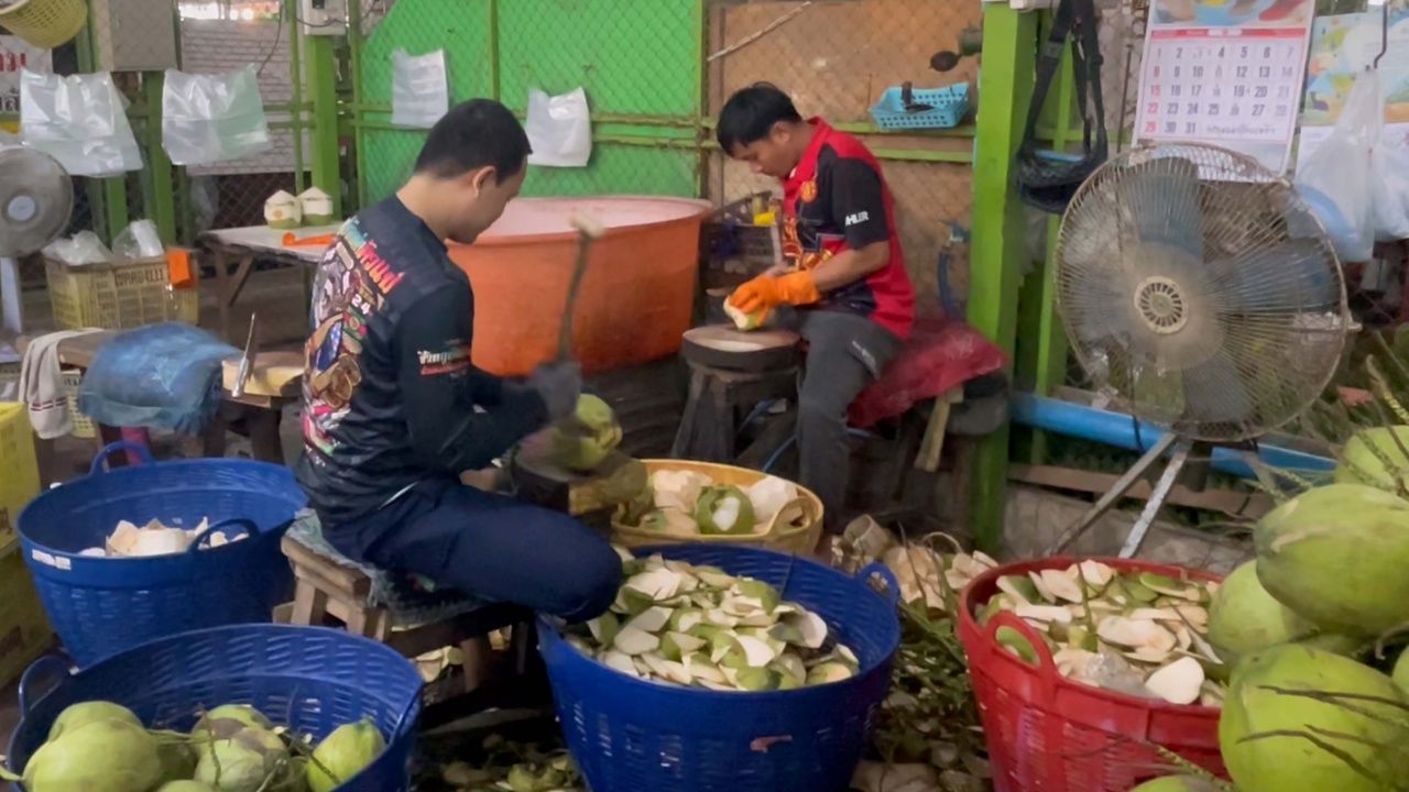 สภาพอากาศร้อนจัด ช่วยดันยอดขาย "มะพร้าวน้ำหอม" ที่ขอนแก่นคึกคัก พุ่งกว่าวันละ 100 ลูก บางร้านยอดขายพุ่งวันละเกือบ 1,000 ลูก