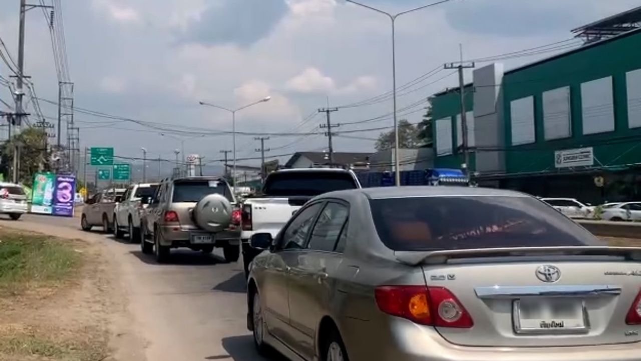 เมื่อเวลา 17.30 น. วันที่ 15 มีนาคม 2569 ผู้สื่อข่าวรายงานจาก อ.แม่สอด จ.ตาก ถึงสถานการณ์การจำหน่ายน้ำมันเชื้อเพลิงในพื้นที่ 5 อำเภอแนวชายแดนจังหวัดตาก โดยเฉพาะที่อำเภอแม่สอด จังหวัดตาก ซึ่งติดกับประเทศเมียนมา ยังคงมีประชาชนใน อ.แม่สอด และอำเภอข้างเคียงได้นำรถยนต์ทั้งรถบรรทุกขนาดใหญ่ รถขนส่งสินค้าเกษตร รถยนต์ส่วนบุคคล และรถจักรยานยนต์จำนวนมาก ไปต่อคิวเป็นแถวยาวตลอดถนนสายเอเชีย 12 ที่มีปั๊มต่างๆ ริมถนน ทำให้เกิดปัญหาจราจร เจ้าหน้าที่ตำรวจ สภ.แม่สอด ต้องได้รับการร้องขอไปแก้ปัญหาจราจรในหลายจุด เพราะรถยนต์จอดขวางถนน