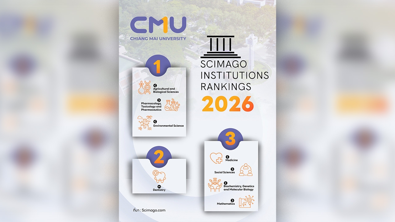มหาวิทยาลัยเชียงใหม่ตอกย้ำความเป็นผู้นำด้านวิชาการของประเทศ ด้วยการคว้า อันดับ 1 ของประเทศไทยใน 7 สาขาวิชาย่อย จากการจัดอันดับ SCImago Institutions Rankings (SIR) 2026 พร้อมทั้งติดอันดับ 3 ของประเทศ และอันดับที่ 2,077 ของโลก ในกลุ่มสถาบันอุดมศึกษา จากมหาวิทยาลัยไทยที่ได้รับการจัดอันดับทั้งหมด 42 แห่ง สะท้อนศักยภาพด้านงานวิจัยและความเป็นมหาวิทยาลัยวิจัยชั้นนำในระดับสากล
