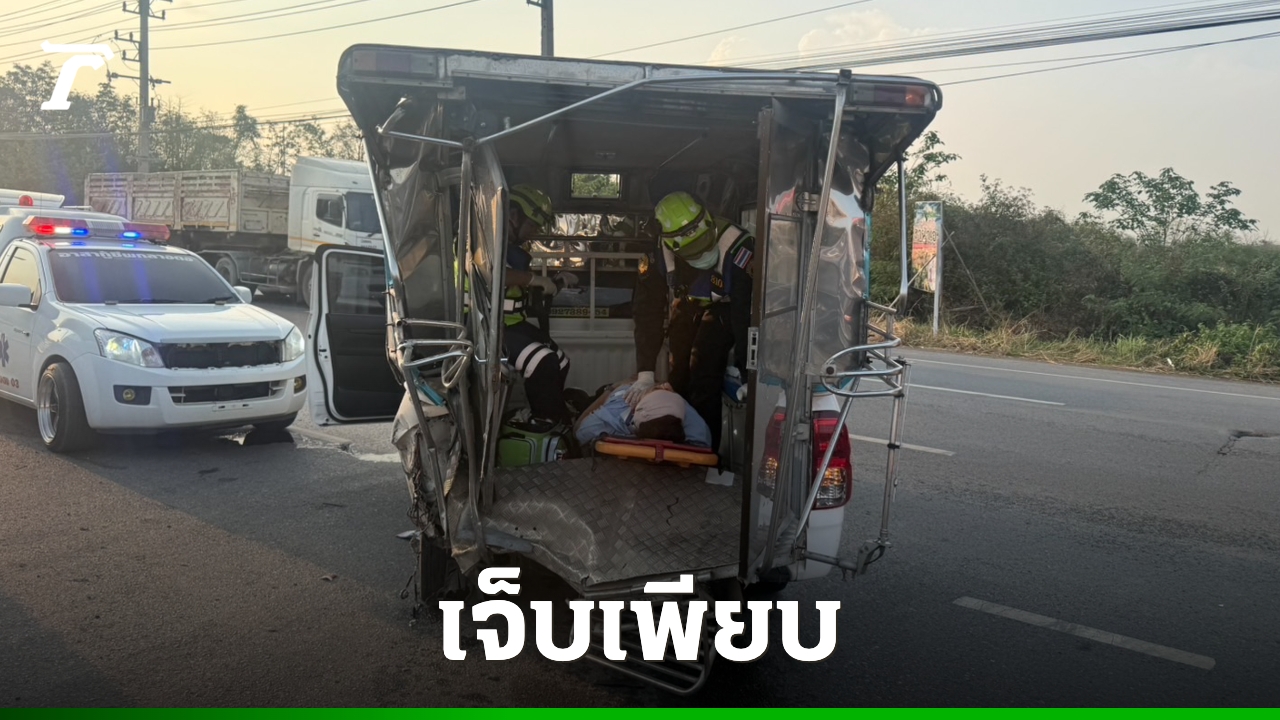 ตำรวจออกเวร เกิดวูบหลับใน ขับกระบะพุ่งชนท้ายรถรับส่งคนงานบนถนนมิตรภาพ เฉี่ยวชนกัน 4 คัน มีผู้ได้รับบาดเจ็บรวม 11 ราย