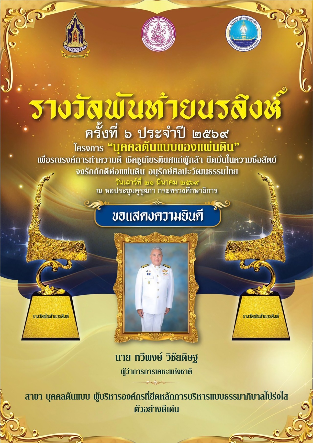 รางวัลดังกล่าวจัดขึ้นโดยมูลนิธิคุ้มเกล้าเยาวชนคนสร้างชาติ เพื่อยกย่องบุคคลและองค์กรที่ยึดมั่นในคุณธรรม ความซื่อสัตย์สุจริต และหลักธรรมาภิบาล พร้อมเป็นแบบอย่างที่ดีของสังคม โดยงานดังกล่าวจัดขึ้น เมื่อวันที่ 21 มีนาคม 2569 ณ หอประชุมคุรุสภา กระทรวงศึกษาธิการ