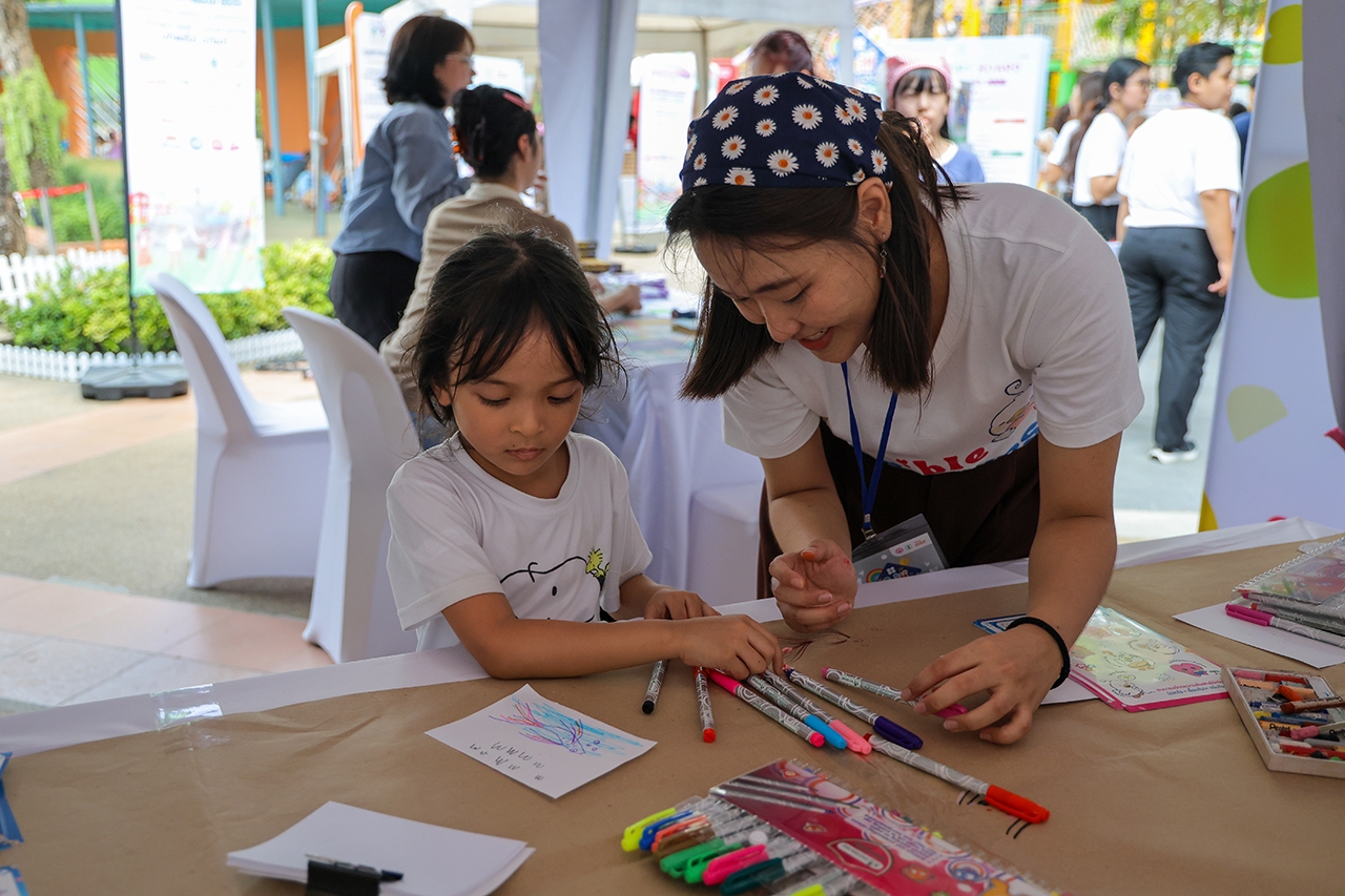 เริ่มต้นกันที่ อาคารสายรุ้ง พื้นที่ผ่อนคลายฮีลใจที่มาพร้อมโซน FAM Music & Chill Park ให้คุณพ่อคุณแม่ได้พาเด็กๆ นั่งรับลมฟังดนตรีในสวนชิลๆ พร้อมฟังนิทานเสริมสร้างจินตนาการเรื่อง “กาลครั้งหนึ่งเมื่อนานมาแล้ว” รวมถึงมีโซน FAM Network Expo ที่นำเสนอโมเดลดีๆ อย่างพื้นที่รับเลี้ยงเด็ก “บ้านย่ายาย กทม.” และพื้นที่ Smart Kids Smart Play Zone ให้ได้อัปเดตความรู้กัน