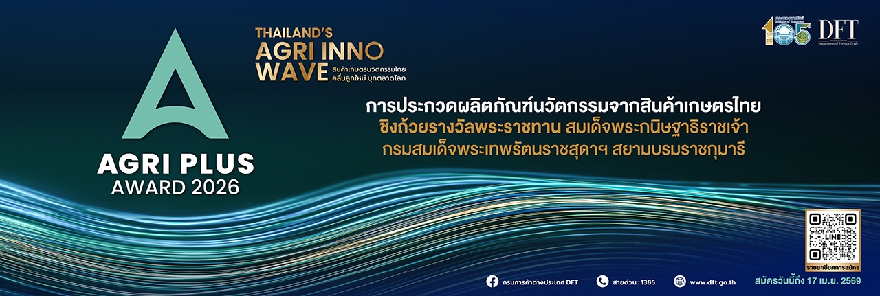 กรมการค้าต่างประเทศ โดยสถาบันส่งเสริมสินค้าเกษตรนวัตกรรม (สกน.) ได้ดำเนินโครงการสร้างสรรค์มูลค่าเพิ่มสินค้าเกษตรนวัตกรรมสู่ตลาดสากล จัดการประกวด “Agri Plus Award 2026” โดยในครั้งนี้ จัดขึ้นเป็นครั้งที่ 5 โดยได้รับพระมหากรุณาธิคุณจากสมเด็จพระกนิษฐาธิราชเจ้า กรมสมเด็จพระเทพรัตนราชสุดาฯ สยามบรมราชกุมารี พระราชทานถ้วยรางวัลแก่ผู้ชนะการประกวด 3 ประเภท ได้แก่ (1) Food Innovation (กลุ่มผลิตภัณฑ์อาหาร) (2) Lifestyle Innovation (กลุ่มผลิตภัณฑ์ที่ไม่ใช่อาหาร) และ (3) Rising Star (กลุ่มผลิตภัณฑ์จากผู้ประกอบการรุ่นใหม่) โดยในปีนี้จัดขึ้นภายใต้แนวคิด “Thailand’s Agri Inno Wave” สินค้าเกษตรนวัตกรรมไทย คลื่นลูกใหม่บุกตลาดโลก ซึ่งเป็นคลื่นแห่งนวัตกรรมในภาคการเกษตรของไทยที่ยกระดับสินค้าเกษตรนวัตกรรมไทยมุ่งสู่ตลาดสากล ด้วยการบูรณาการห่วงโซ่คุณค่าแบบครบวงจร เพื่อตอบโจทย์ความต้องการของตลาดโลก ซึ่งแนวคิดของการจัดประกวดปีนี้ สืบเนื่องมาจากการที่ประเทศไทยมีรากฐานด้านการเกษตรที่เข้มแข็งมาอย่างยาวนาน ภาคเกษตรกรรมไม่ได้เป็นเพียงภาคการผลิตที่สำคัญของประเทศเท่านั้น แต่ยังเป็นรากฐานของความมั่นคงทางอาหาร เศรษฐกิจฐานราก และวิถีชีวิตของประชาชนจำนวนมาก ซึ่งปัจจุบันประเทศไทยไม่ได้เป็นเพียง “ครัวของโลก” อีกต่อไป แต่กำลังก้าวสู่บทบาทใหม่ในฐานะ “ผู้สร้างสรรค์สินค้าเกษตรนวัตกรรมของโลก” โดยคลื่นลูกใหม่ของสินค้าเกษตรนวัตกรรมไทยที่กำลังเติบโตอย่างรวดเร็วและมีศักยภาพสูง ผนวกกับพลังของนวัตกรรม จะเป็นแรงขับเคลื่อนสำคัญที่ผลักดันสินค้าเกษตรไทยให้ก้าวไกลสู่เวทีโลกได้