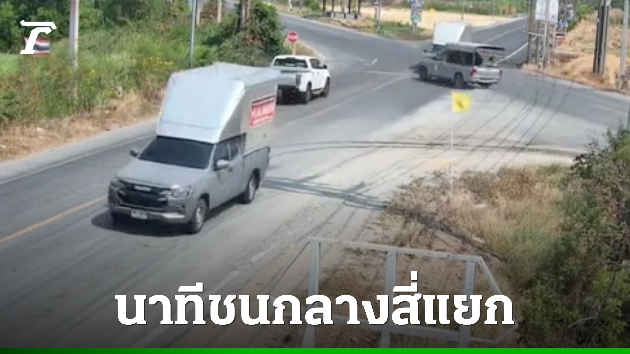 เปิดภาพวงจรปิด นาที "กระบะ" ประสานงา "กระบะ" กลางสี่แยกวัดสามแยก ถนนสายแสนภูดาษ-หนองจอก จนมีผู้ได้รับบาดเจ็บรวม 3 ราย
