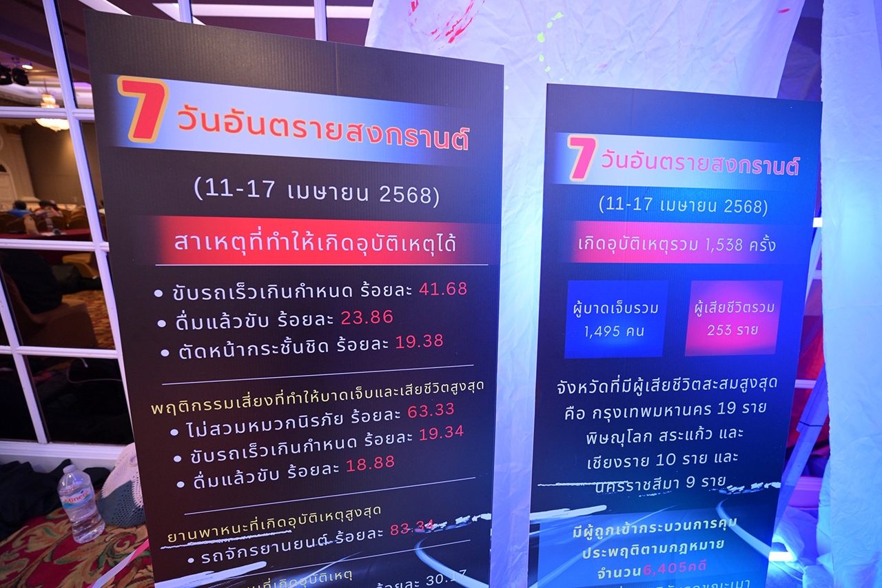 เมื่อเวลา 13.00 น. วันที่ 7 เม.ย 2569 ที่โรงแรมแมนดารินสามย่าน เครือข่ายพัฒนาคุณภาพชีวิต มูลนิธิเด็กเยาวชนและครอบครัว เครือข่ายชุมชนลดปัจจัยเสี่ยง ร่วมกับ สำนักงานกองทุนสนับสนุนการสร้างเสริมสุขภาพ (สสส.) จัดกิจกรรมรณรงค์เนื่องในเทศกาลสงกรานต์ ปี 2569 สงกรานต์ เมา ซิ่ง ตุย “Drink Drive Die อย่าให้เป็นสงกรานต์สุดท้ายของคุณ” พร้อมจัดแสดงละครสั้นสะท้อนปัญหาสงกรานต์เมา อุบัติเหตุ และทะเลาะวิวาท โดยเครือข่ายละครเฉพาะกิจเธียร์เตอร์