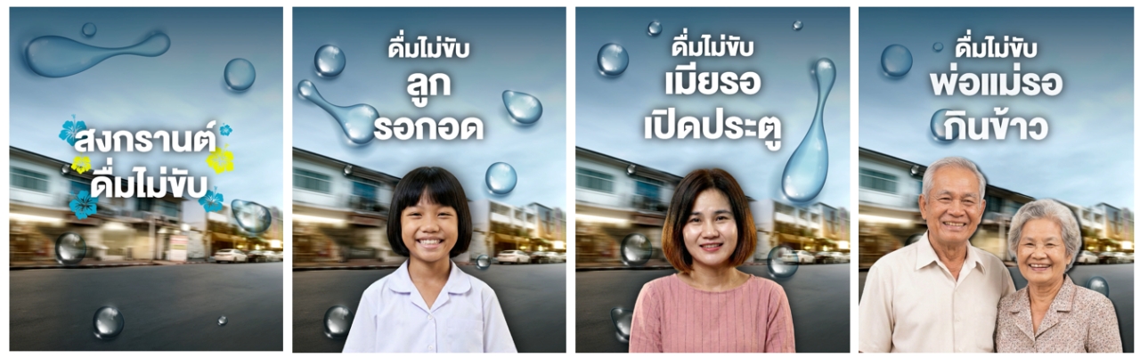 สงกรานต์นี้ ดื่มไม่ขับ กลับบ้านปลอดภัย เพราะคนข้างหลังรออยู่ อย่าลืมว่า ดื่มแล้วขับ ไม่ได้ดับแค่คุณคนเดียว และยังมีคนข้างหลังเป็นห่วง รอคุณอยู่อีกมากมาย…