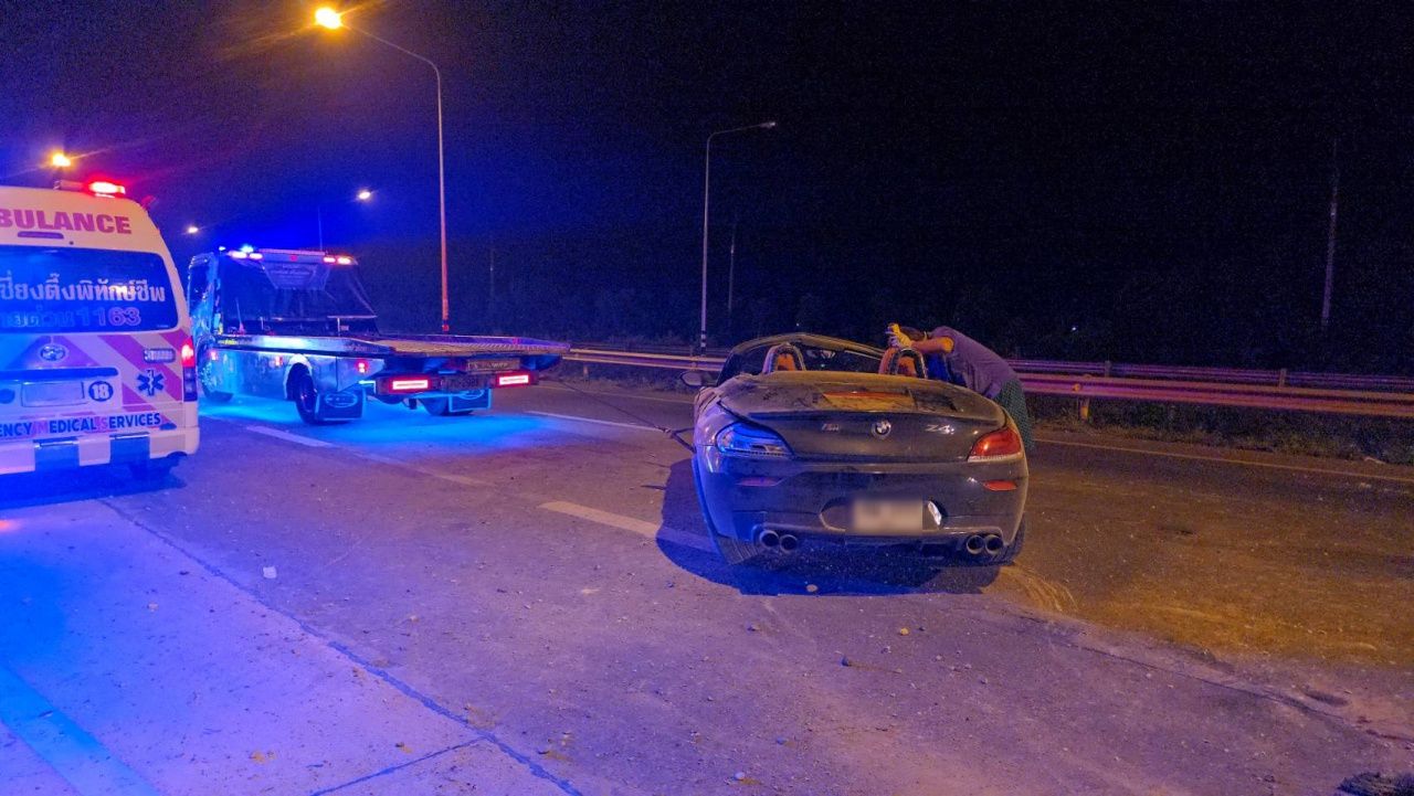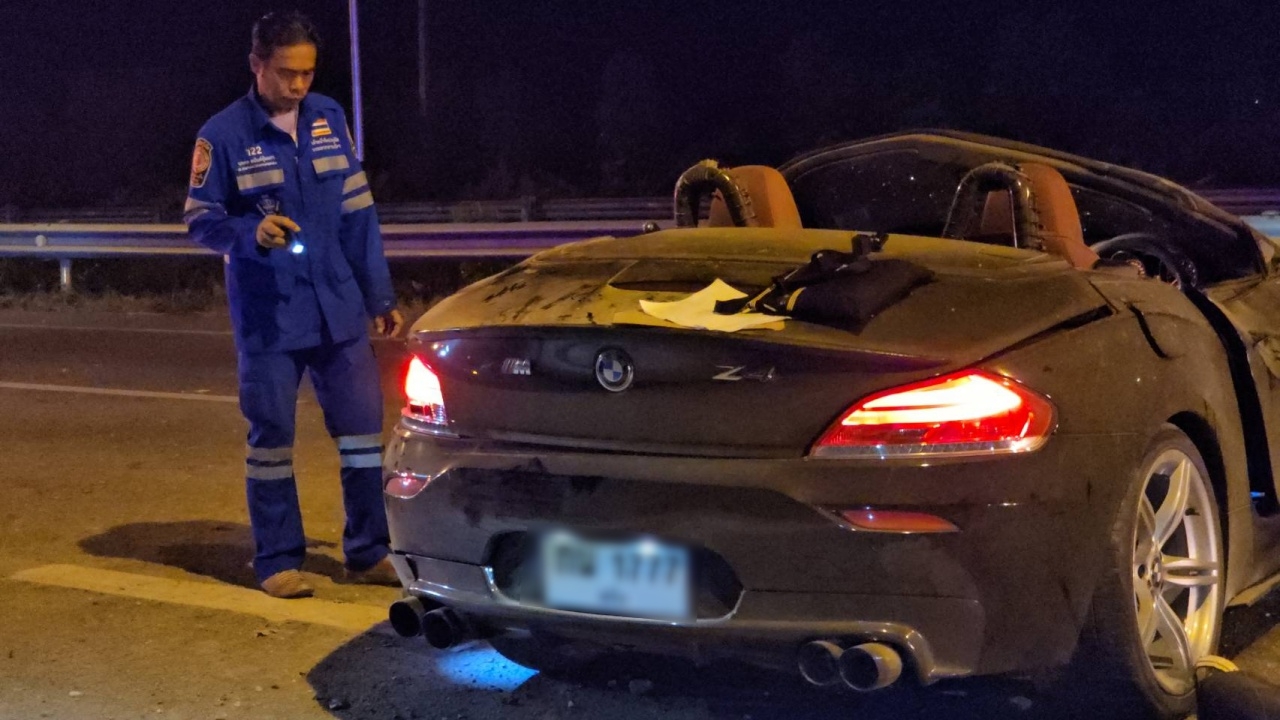 สงขลา เกิดอุบัติเหตุรถเก๋งบีเอ็มดับเบิลยู แซด 4 เสียหลักพลิกคว่ำบนถนนลพบุรีราเมศวร์ สายหาดใหญ่-สงขลา คนขับร่างกระเด็นหลุดจากรถเสียชีวิตคาที่ ตำรวจเร่งหาสาเหตุ