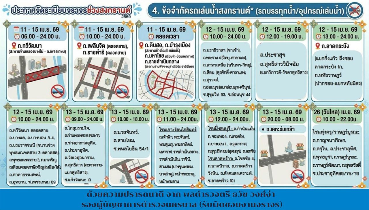 สรุปข้อบังคับจราจร กรุงเทพมหานคร ช่วงเทศกาลสงกรานต์ 2569