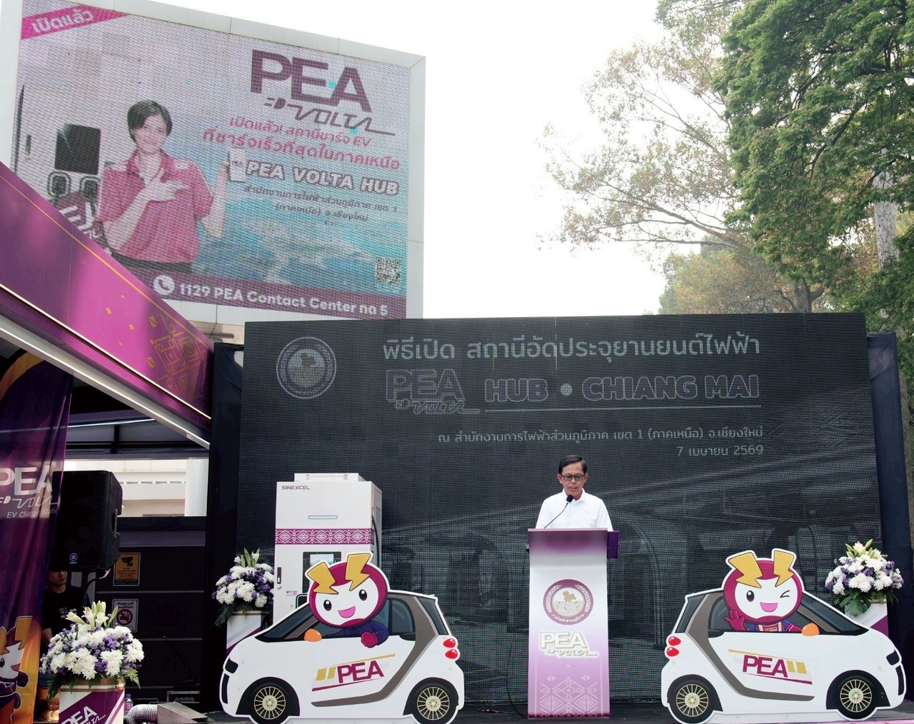 นายอุดมศักดิ์ เต็มวงษ์ รองผู้ว่าการการไฟฟ้าส่วนภูมิภาค เป็นประธานในพิธีเปิดสถานีอัดประจุยานยนต์ไฟฟ้า PEA VOLTA HUB CHIANG MAI นายเมธี บุญพรหม ผู้ช่วยผู้ว่าการการไฟฟ้าส่วนภูมิภาค กล่าวรายงาน โดยมี นายชัชวาลย์ ปัญญา รองผู้ว่าราชการจังหวัดเชียงใหม่ หัวหน้าส่วนราชการ ผู้บริหาร พนักงาน ร่วมพิธี ณ สำนักงานการไฟฟ้าส่วนภูมิภาค เขต1 (ภาคเหนือ) จังหวัดเชียงใหม่