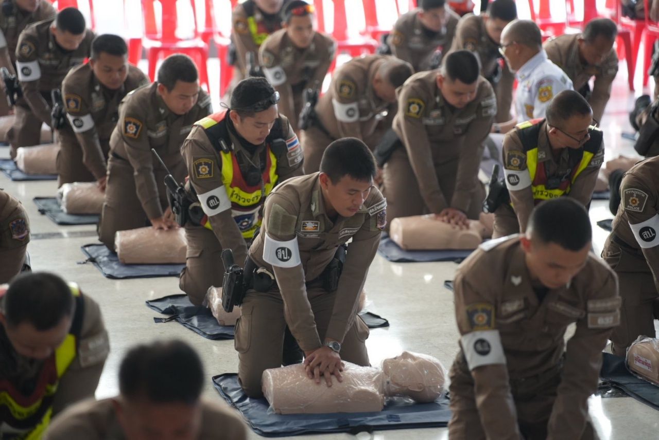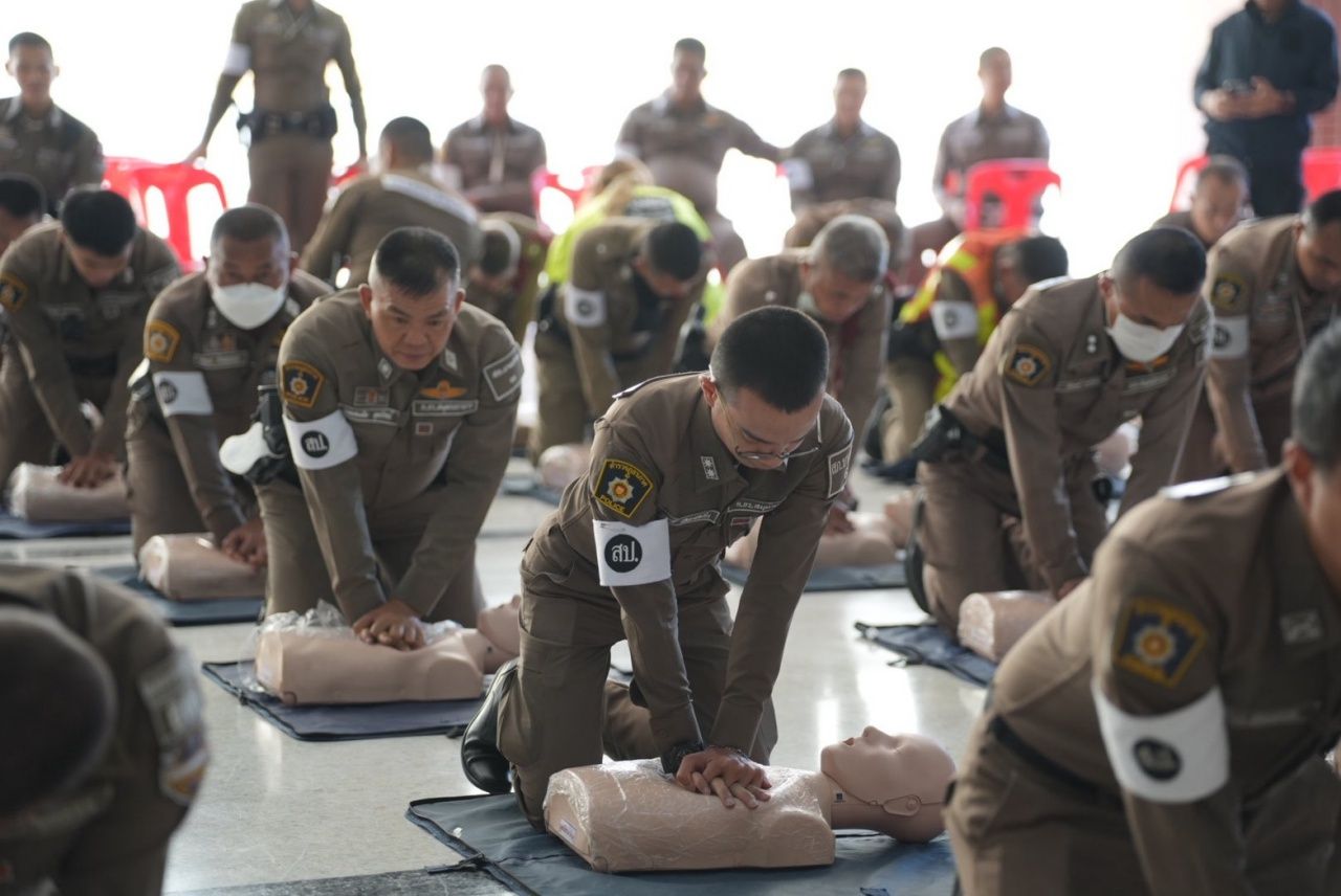 โดยมีวัตถุประสงค์เพื่อให้เจ้าหน้าที่ตำรวจมีความรู้และทักษะในการปฐมพยาบาลเบื้องต้น การช่วยฟื้นคืนชีพขั้นพื้นฐาน (CPR) และช่วยเพิ่มโอกาสฟื้นตัวจากความพิการหรือเสียชีวิตให้กับผู้ป่วยเกี่ยวกับภาวะหัวใจหยุดเต้น สมองขาดเลือด และเส้นเลือดในสมองแตก การใช้เครื่องมือการกระตุ้นหัวใจไฟฟ้าอัตโนมัติ (AED) การใช้รูปแบบสัญญาณมือขอความช่วยเหลือแบบสากล (SOS) จำนวน 300 นาย แยกเป็น 2 รุ่น รุ่นละ 150 นาย และทีมแม่บ้านตำรวจภูธรสมุทรปราการ ร่วมการฝึกอบรมด้วย