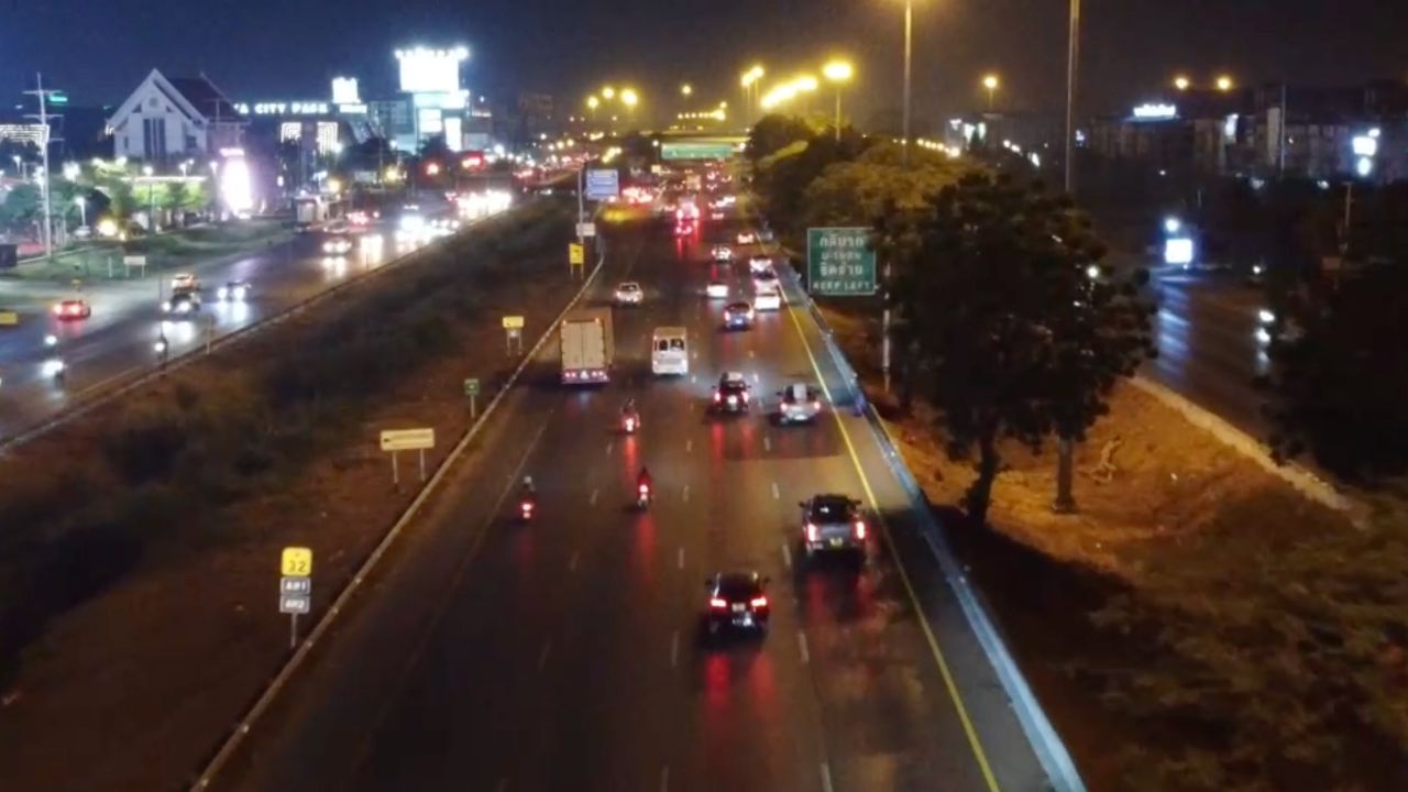 ถนนสายเอเชีย ช่วงผ่านอยุธยา การจราจรยามค่ำคืนวันหยุดวันแรก รถยังมากวิ่งเต็มทุกช่องทางจราจร แต่ยังเคลื่อนตัวได้ดี คาดคืนนี้คนเดินทางกลับบ้านช่วงสงกรานต์ตลอดทั้งคืน