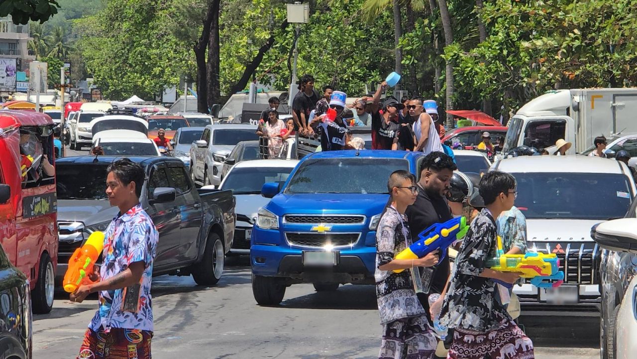วันที่ 13 เมษายน 2569 ที่ จ.ภูเก็ต ผู้สื่อข่าวรายงานบรรยากาศการเล่นน้ำสงกรานต์ในพื้นที่จังหวัดภูเก็ต เป็นไปอย่างคึกคักในหลายจุด โดยเฉพาะในเขตเทศบาลเมืองป่าตอง อำเภอกะทู้ พบว่ามีนักท่องเที่ยวทั้งชาวไทยและชาวต่างชาติหลั่งไหลเดินทางไปร่วมเล่นน้ำบริเวณซอยบางลา เป็นจำนวนมาก ส่งผลให้การจราจรขาเข้าในเส้นทางหลัก อาทิ ถนนราษฎร์อุทิศ 200 ปี และถนนทวีวงษ์ ติดขัดอย่างหนัก รถทุกชนิดเคลื่อนตัวได้ช้า ผู้ที่มุ่งหน้าเข้าสู่พื้นที่ต้องใช้เวลาเดินทางนานเกือบ 1 ชั่วโมง
