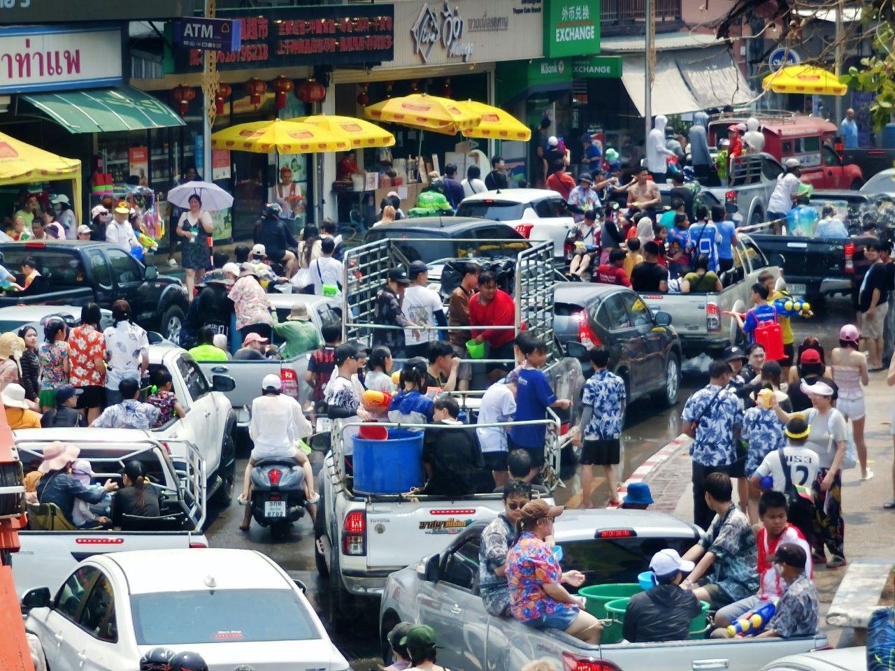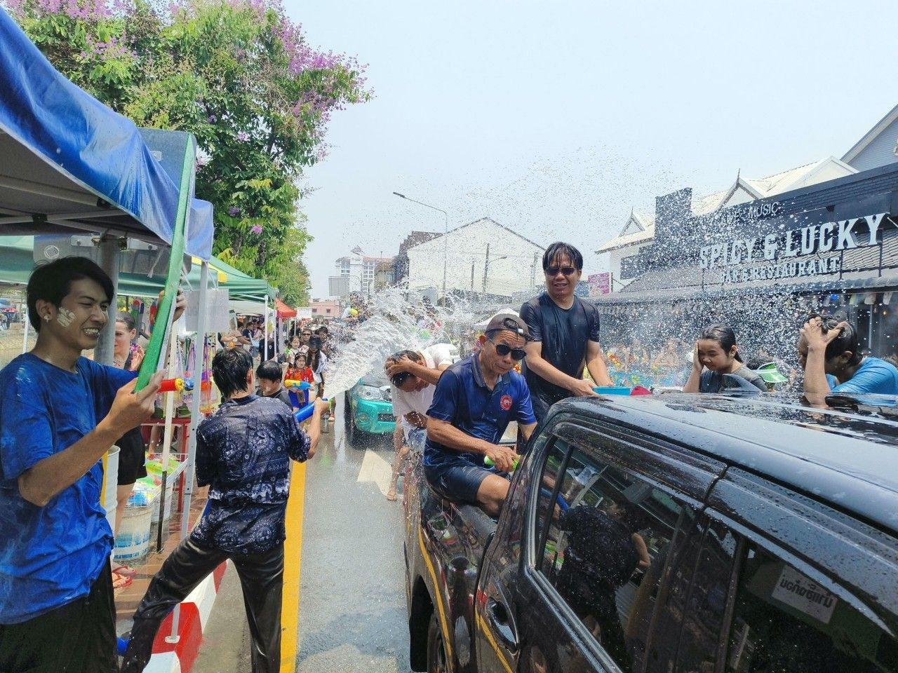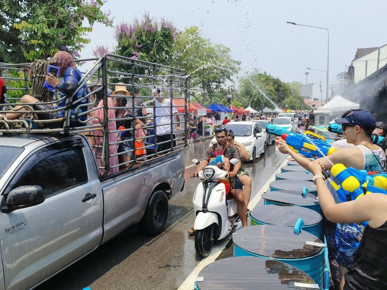 จากการสังเกตพบว่า นักท่องเที่ยวจำนวนไม่น้อยนิยมใช้รถยนต์กระบะบรรทุกถังน้ำ ขับวนรอบคูเมืองเพื่อเล่นน้ำกันอย่างสนุกสนาน สร้างสีสันให้กับเทศกาลสงกรานต์ปีนี้ แม้จะต้องเผชิญกับสถานการณ์ฝุ่นควัน PM2.5 ที่ยังคงเกินค่ามาตรฐานในหลายพื้นที่