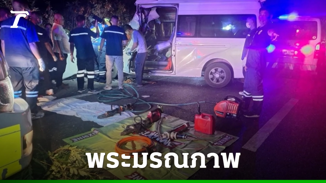 รถตู้จาก จ.เลย เดินทางพาเณรไปสอบ เกิดอุบัติเหตุชนท้ายหกล้อบรรทุกไม้ ที่ อ.ชัยบาดาล จ.ลพบุรี บาดเจ็บนับสิบ "พระครูจริยสารธรรม" อดีตเจ้าคณะอำเภอนาด้วง นั่งข้างคนขับ มรณภาพ
