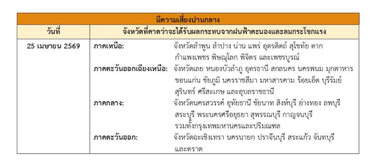 เช็กจังหวัดที่คาดว่าจะได้รับผลกระทบจาก "ฝนฟ้าคะนองและลมกระโชกแรง"