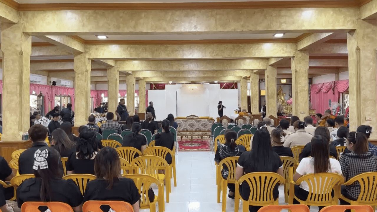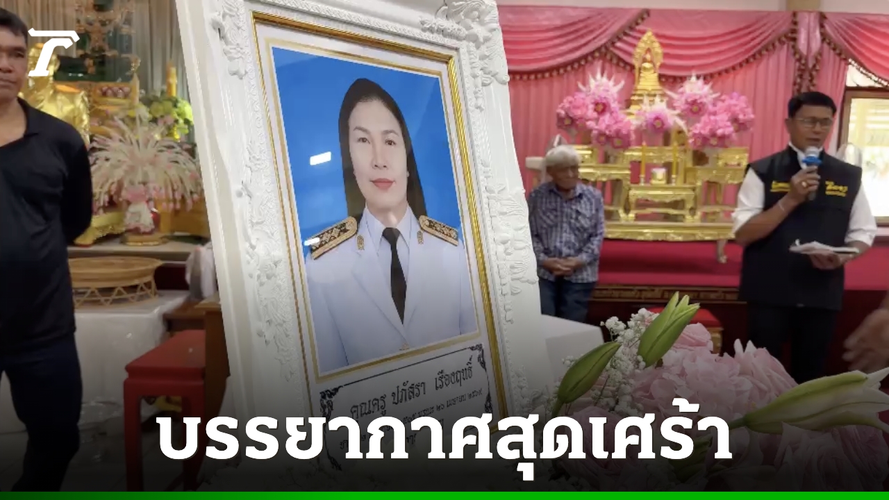 บรรยากาศภายในงานเต็มไปด้วยความโศกเศร้า มีครอบครัว ญาติ เพื่อนครู และลูกศิษย์ ทยอยเดินทางมาร่วมไว้อาลัยและแสดงความเสียใจอย่างต่อเนื่อง โดยร่างของผู้เสียชีวิตได้เคลื่อนย้ายมาจากสถาบันนิติวิทยาศาสตร์ กระทรวงยุติธรรม จ.ปทุมธานี มาถึงวัด ท่ามกลางความอาลัยของครอบครัว ซึ่งมีบิดามารดา และบุตรทั้ง 3 คน ได้แก่ ลูกชายคนโต อายุ 18 ปี ลูกสาวคนที่สอง อายุ 10 ปี และลูกสาวคนเล็ก อายุ 2 ปี เข้ารับร่าง ขณะที่มีนักจิตวิทยาเข้าดูแลสภาพจิตใจของครอบครัวอย่างใกล้ชิด
