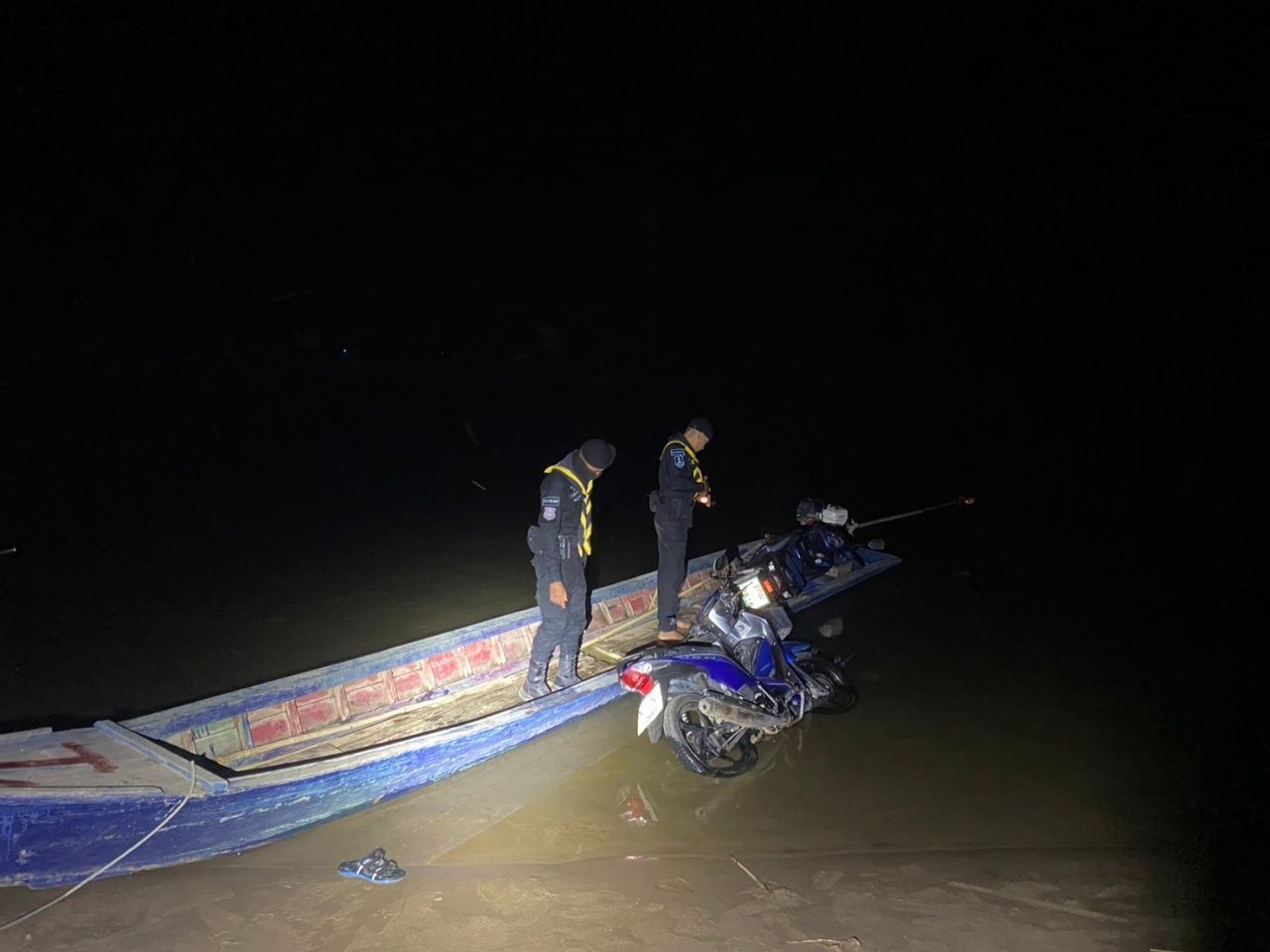 ในขณะกำลังปฏิบัติหน้าที่อยู่ริมแม่น้ำเมย ได้สังเกตเห็น ผู้ต้องสงสัย จำนวน 2 คน ท่าทางมีพิรุธ จึงแสดงตัวเข้าตรวจสอบ กลุ่มบุคคลดังกล่าวได้หลบหนีไปในความมืด จากการตรวจสอบบริเวณดังกล่าว พบรถจักรยานยนต์ ยี่ห้อฮอนด้า รุ่นเวฟ 110 ไอ หมายเลขทะเบียน 1 กธ 5291 สมุทรสาคร และ รถจักรยานยนต์ ยี่ห้อฮอนด้า รุ่นเวฟ 125 ไอ หมายเลขทะเบียน 2 กผ 9816 ระยอง พร้อมเรือยนต์หางยาว ถูกทิ้งไว้ในที่เกิดเหตุริมแม่น้ำเมย พรมแดนไทย-เมียนมา