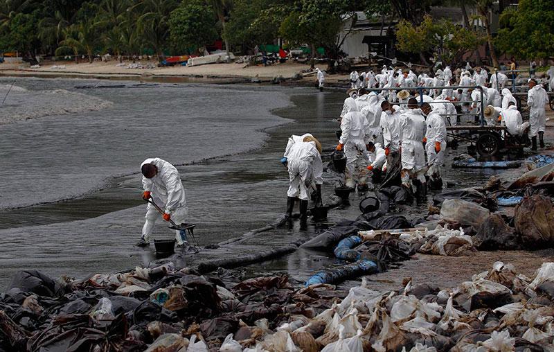 วันที่ 27 ก.ค. เกิดเหตุท่อรับน้ำมันดิบที่ขนถ่ายจากเรือไปยังโรงกลั่นบริษัท พีทีที โกลบอล เคมิคอล จำกัด (มหาชน) ที่ท่าเรือมาบตาพุด จ.ระยอง รั่วไหล เนื่องจากท่อส่งน้ำมันเก่ามีปัญหา น้ำมันดิบจำนวน 50,000 ลิตร ไหลลงทะเลอ่าวไทย ถูกคลื่นซัดกระจายไปถึงอ่าวพร้าว เกาะเสม็ด แหล่งท่องเที่ยว อันลือชื่อของภาคตะวันออกอีกแห่ง คราบน้ำมันเหนียวเหนอะดำสนิทลอยไปติดหาดทรายสีขาวจนเสียหายย่อยยับ ใช้เวลานานกว่าที่จะปฏิบัติการกู้สภาพให้กลับคืนดังเดิม ธุรกิจการท่องเที่ยวเสียหายอย่างประมาณค่ามิได้.